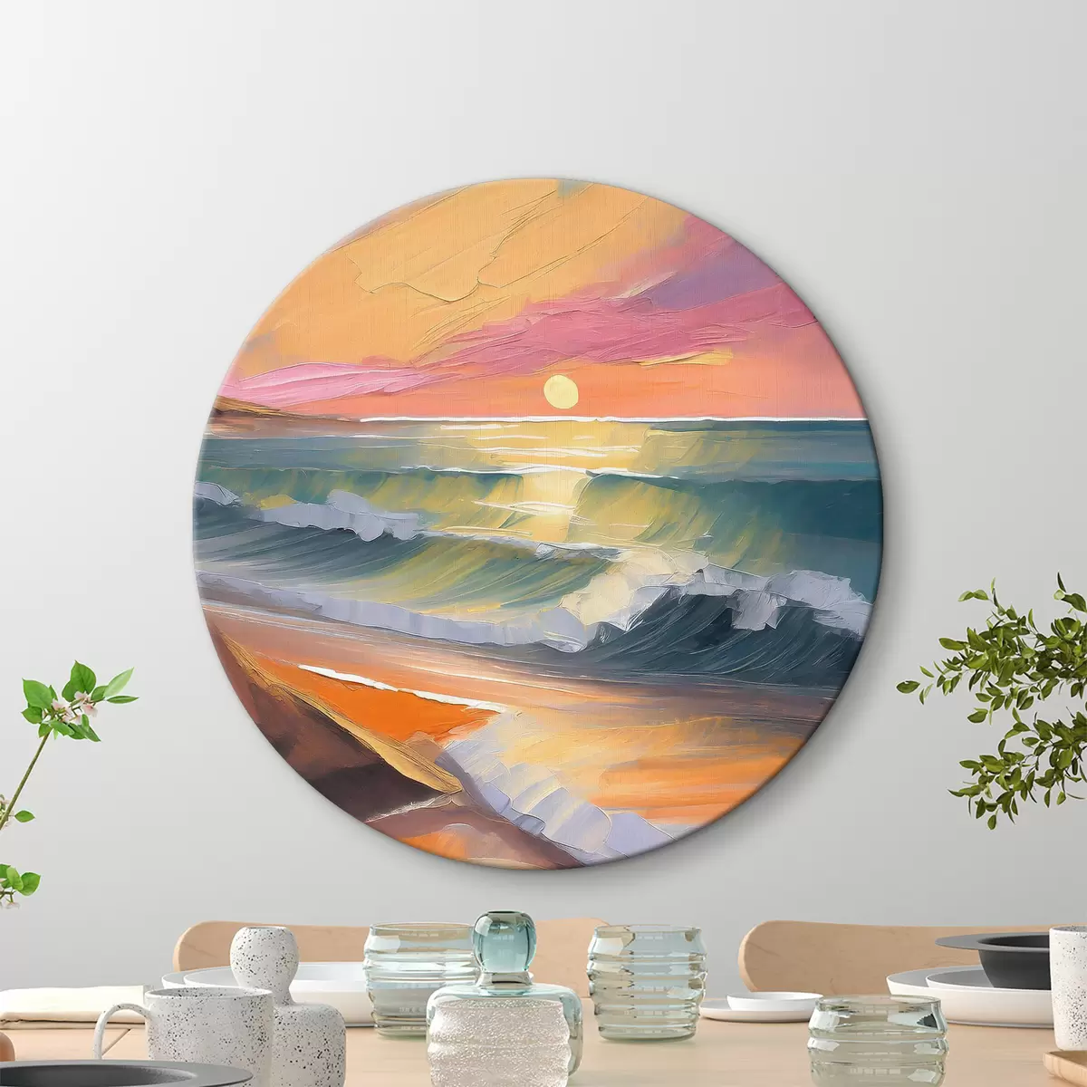 Okrągłe obrazy Odbicia zachodu słońca w żywych pociągnięciach pędzla r36586