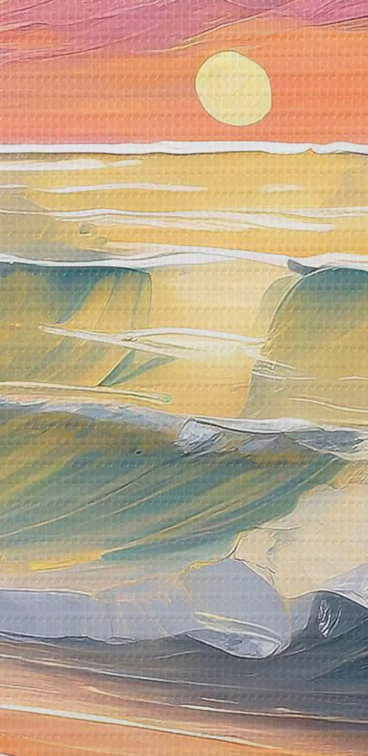 Okrągły obraz Odbicia zachodu słońca w żywych pociągnięciach pędzla Nr r36586