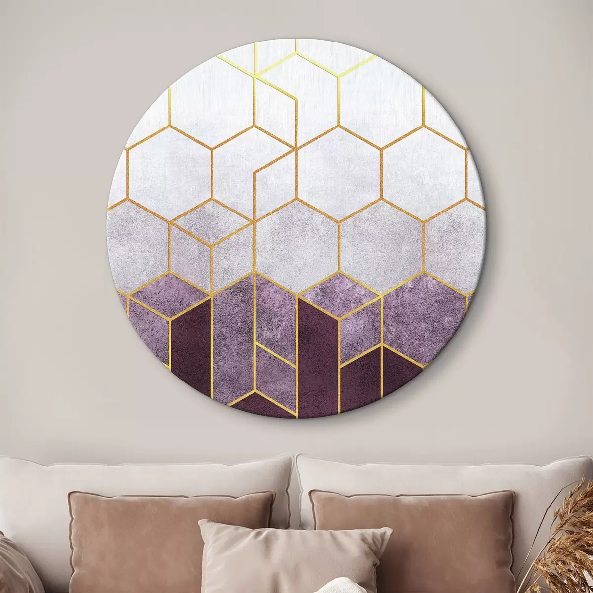 Okrągły obraz Elegancka teksturowana ściana z sześciokątnym wzorem Nr r36601v1