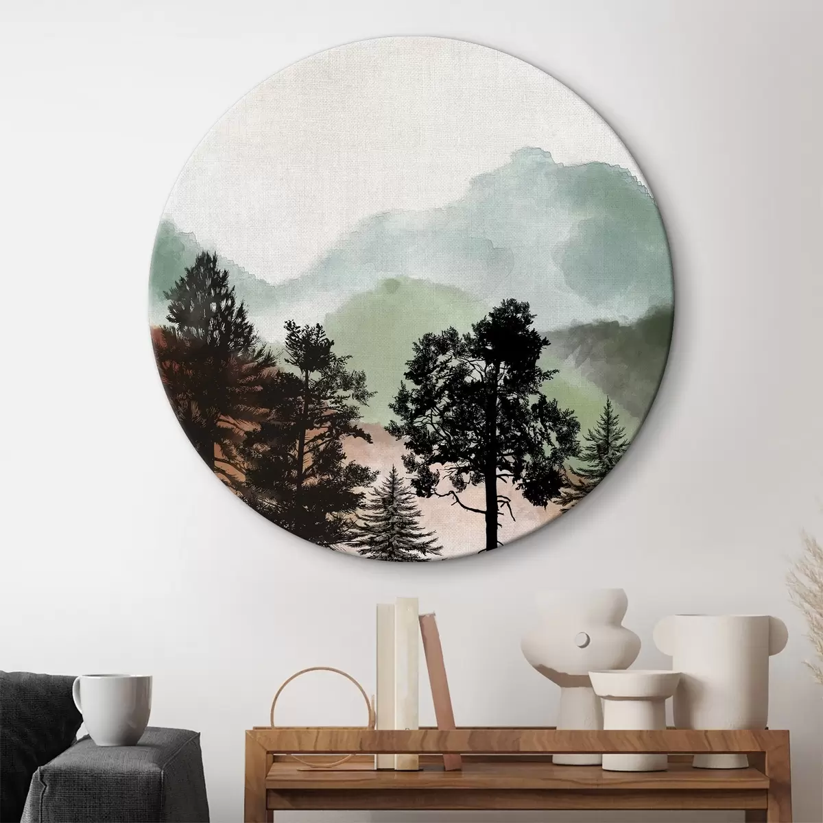 Okrągłe obrazy Akwarela górski krajobraz z drzewami r36603