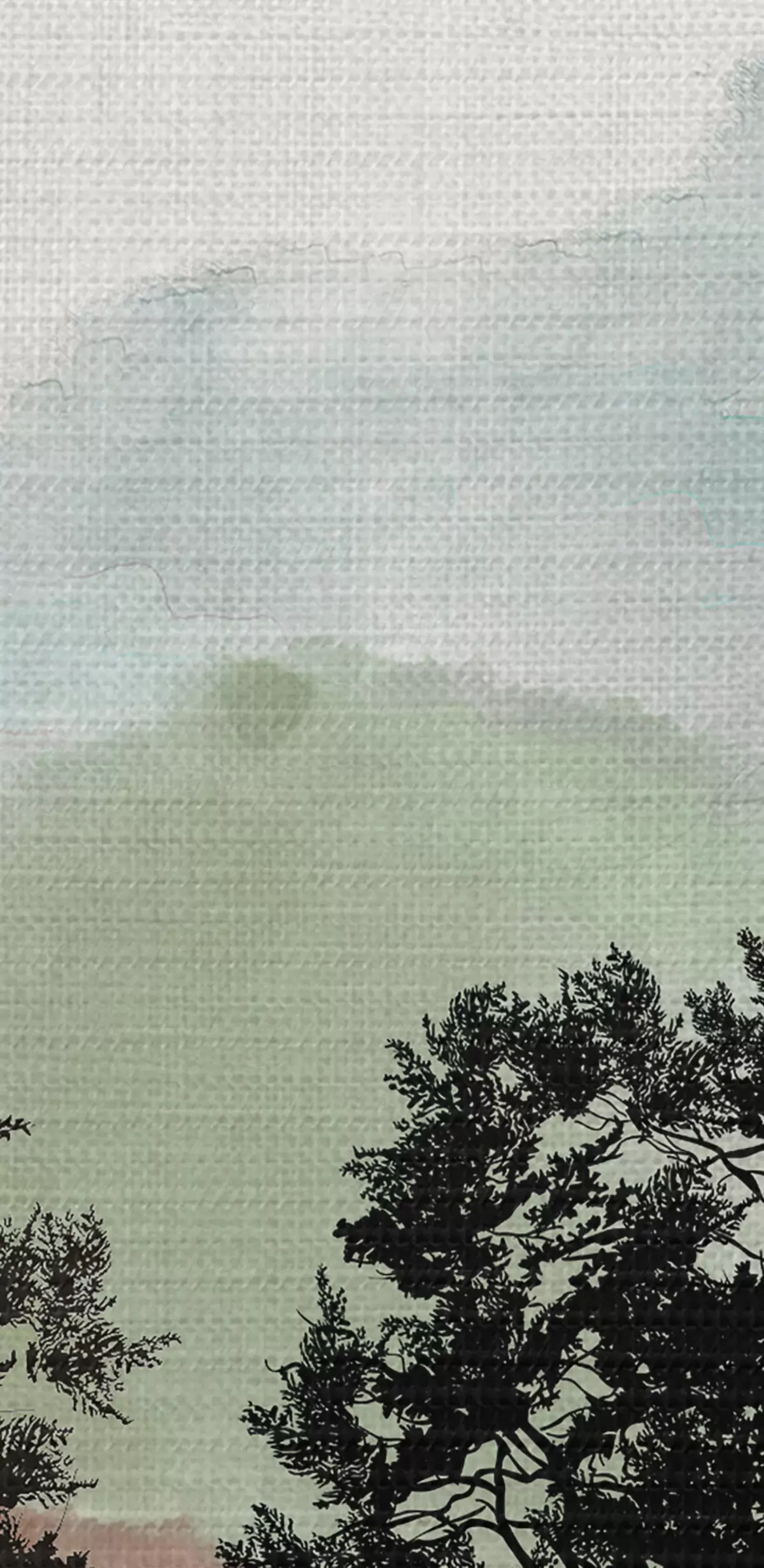 Okrągły obraz Akwarela górski krajobraz z drzewami Nr r36603