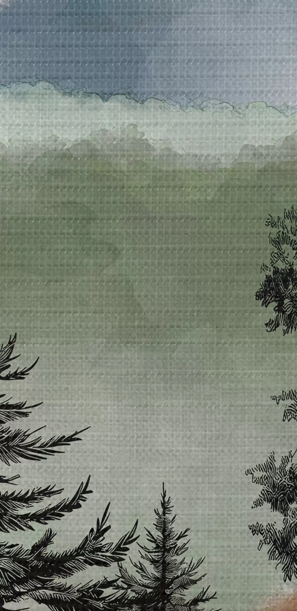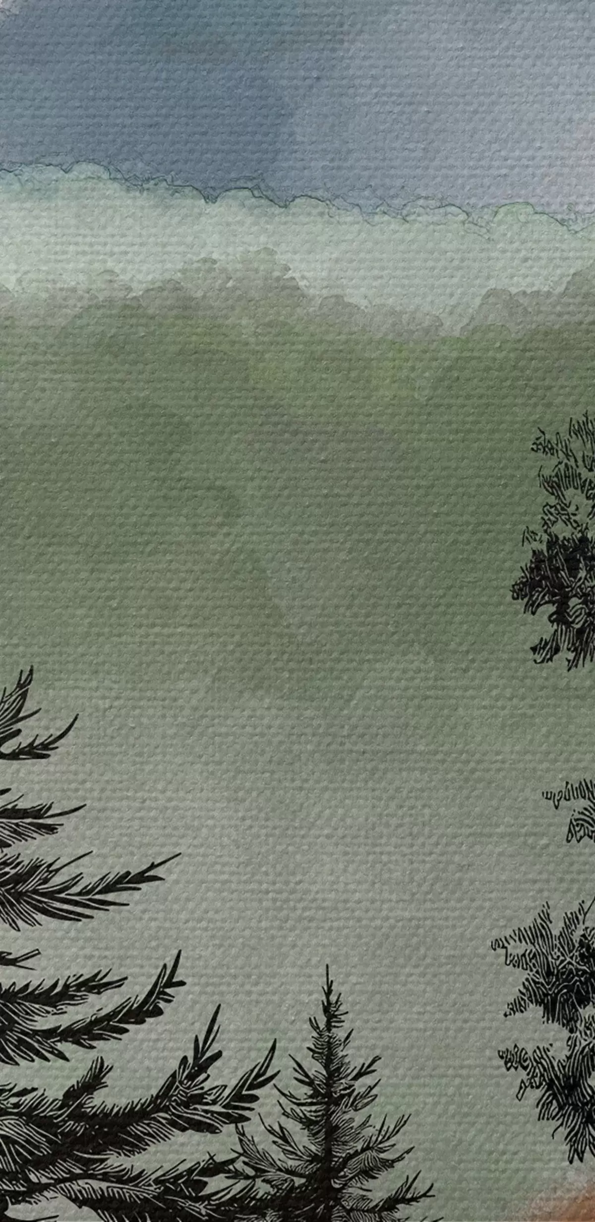 Okrągły obraz Akwarela gór i drzew Nr r36604