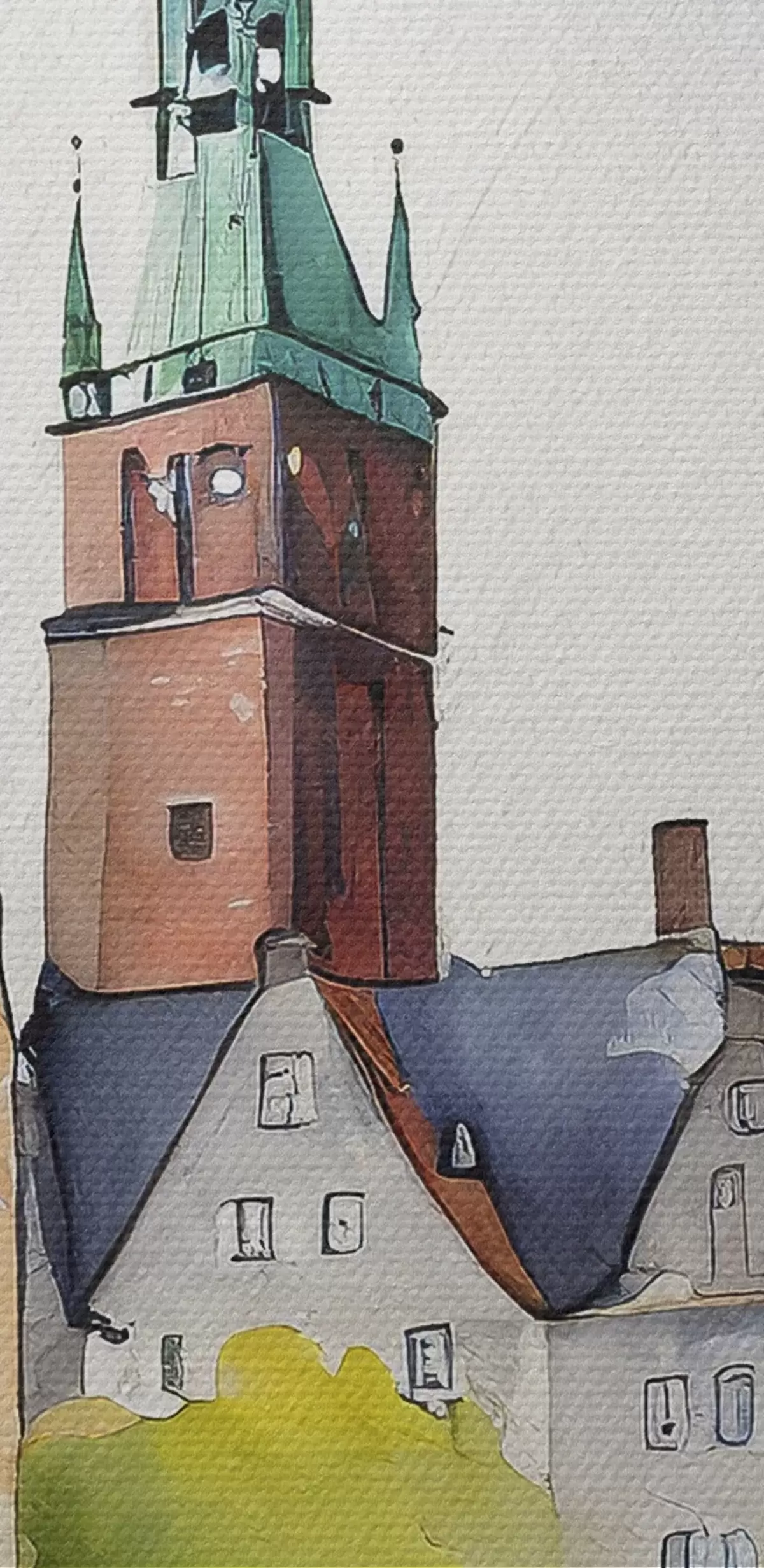 Okrągłe obrazy Duńskie ulice, akwarela, rysunek architektoniczny r36682