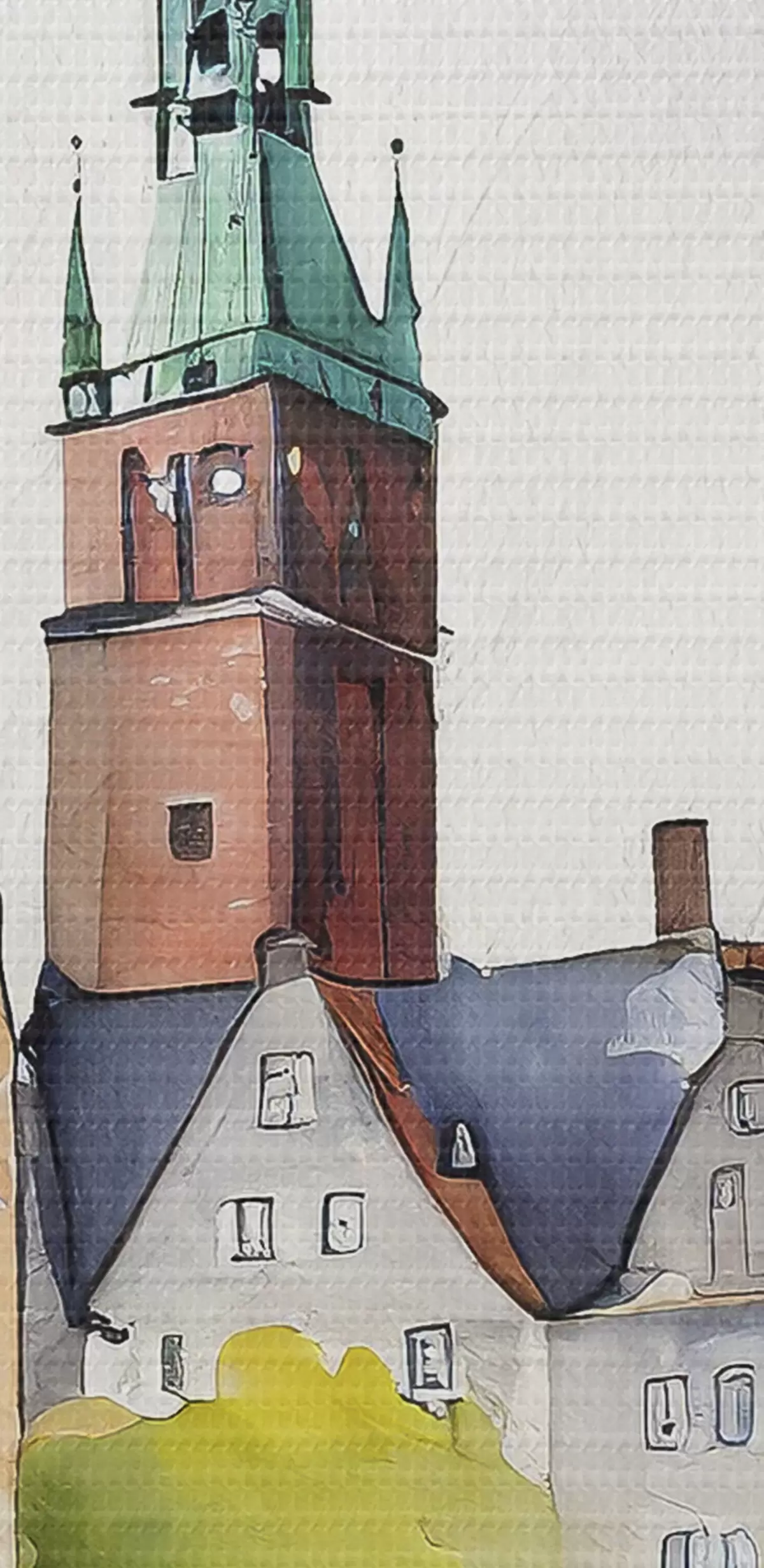Okrągły obraz Duńskie ulice, akwarela, rysunek architektoniczny Nr r36682