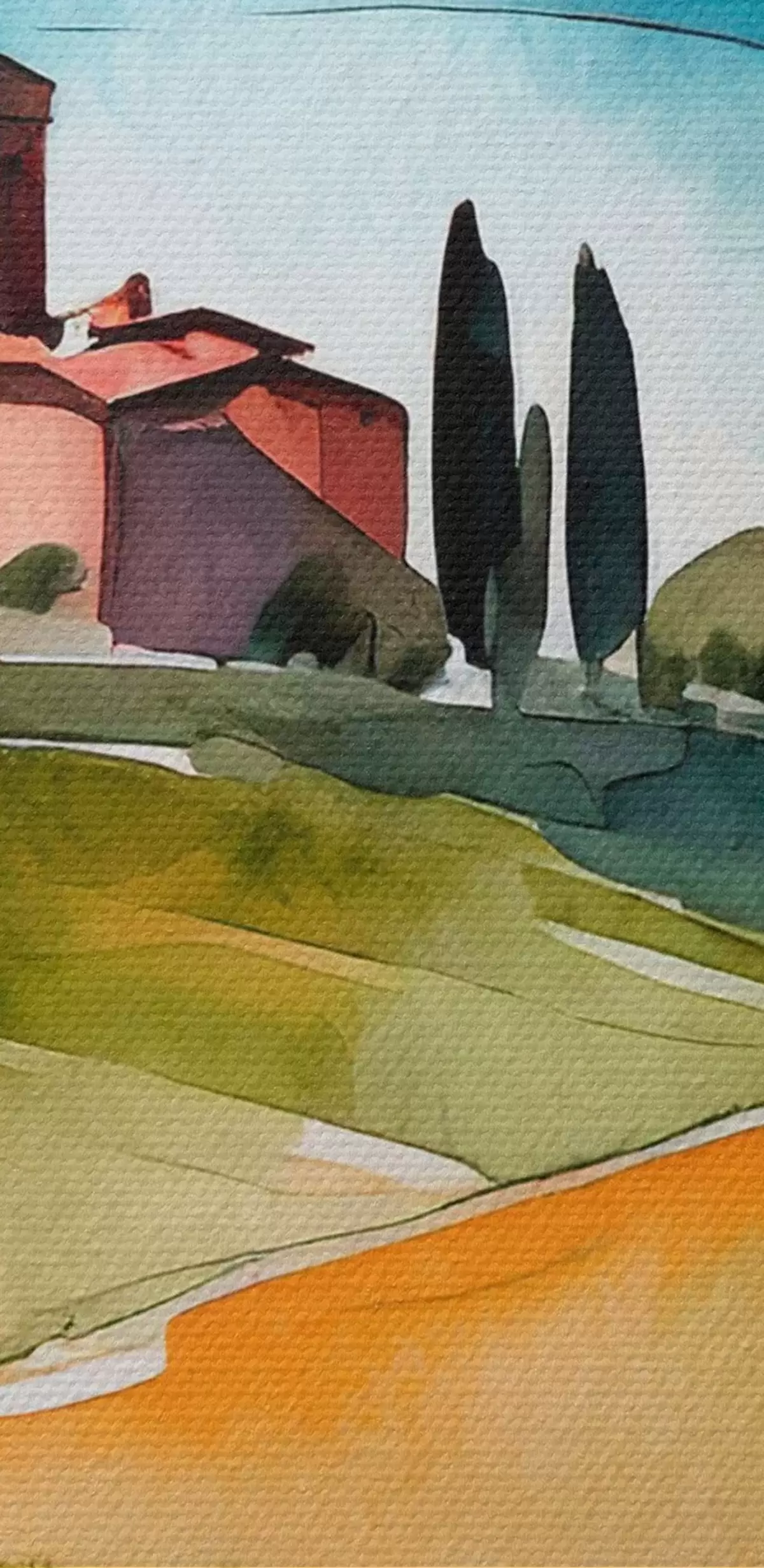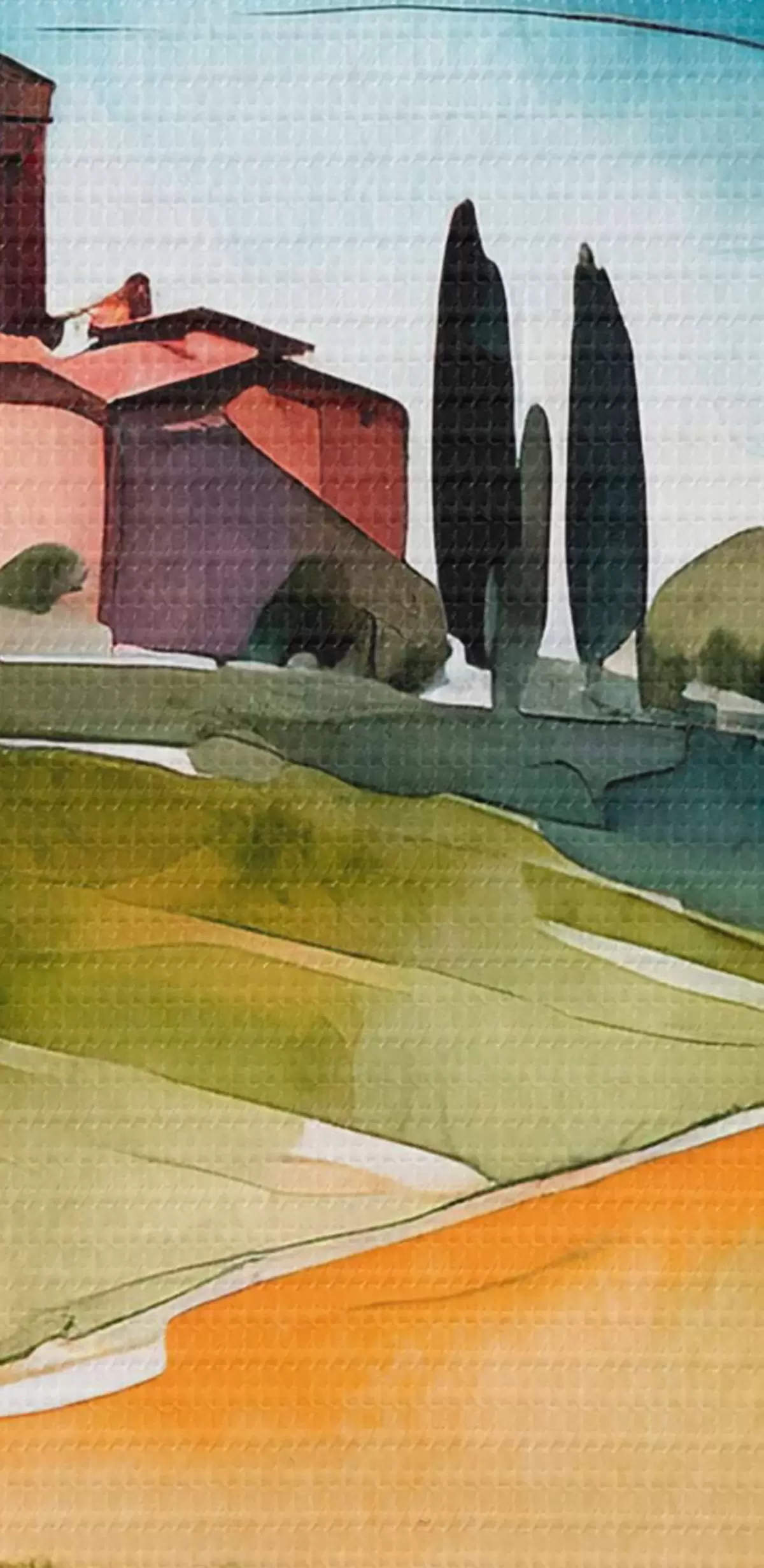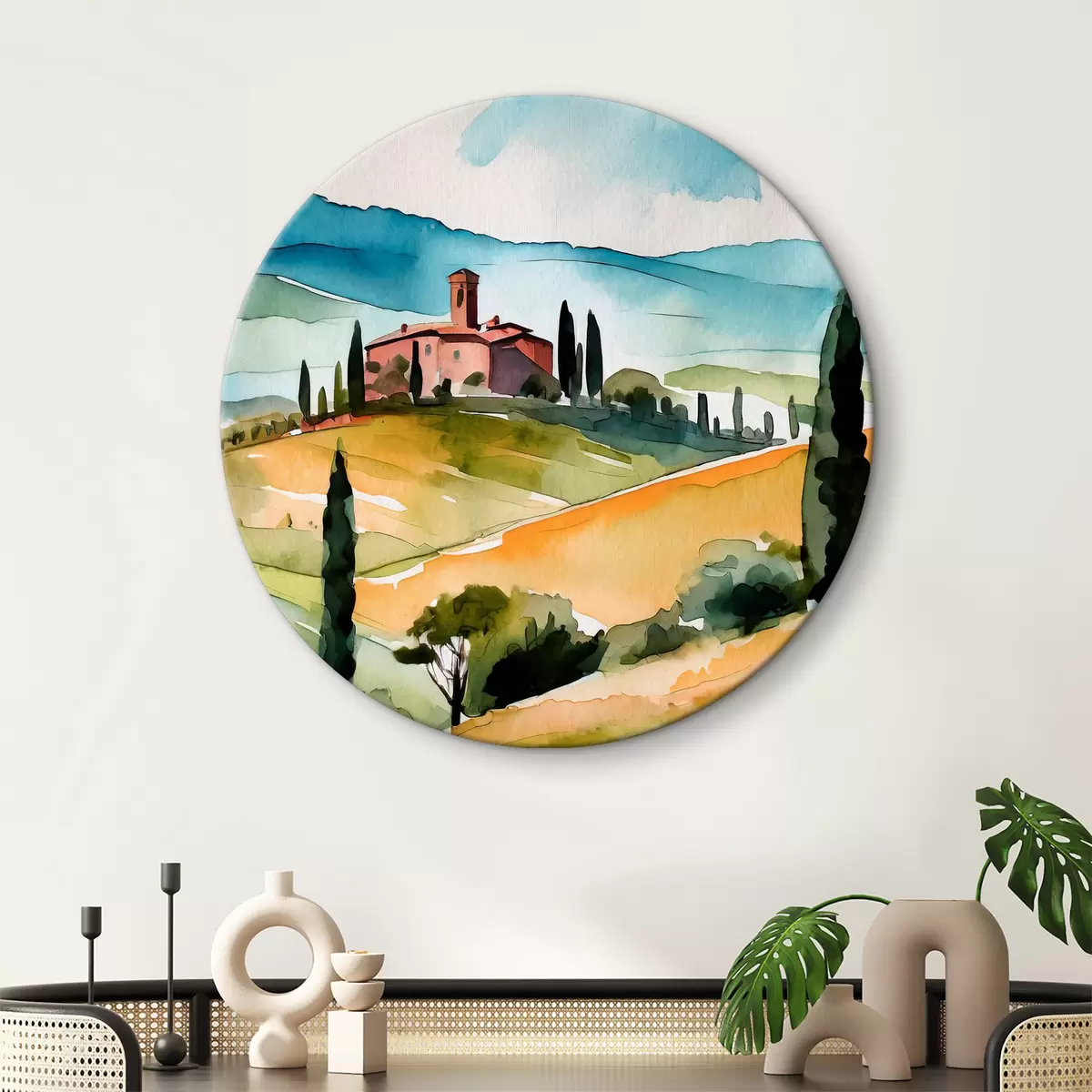 Okrągłe obrazy Włoski krajobraz, akwarela, Toscana r36683