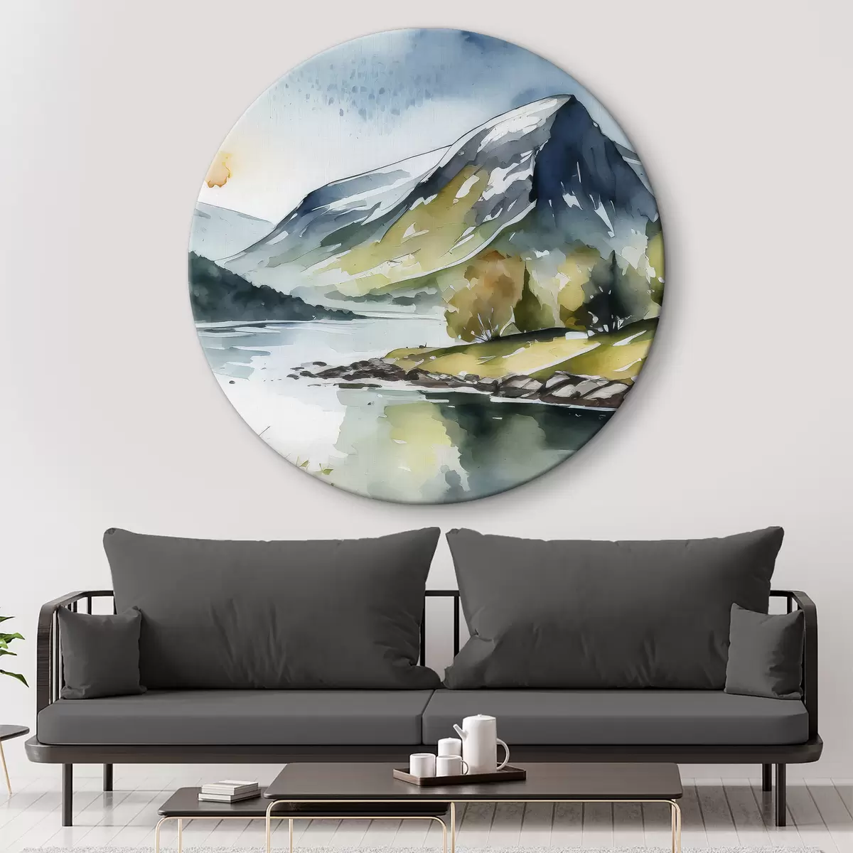 Okrągły obraz Natura Norwegii, akwarela, góry Nr r36686