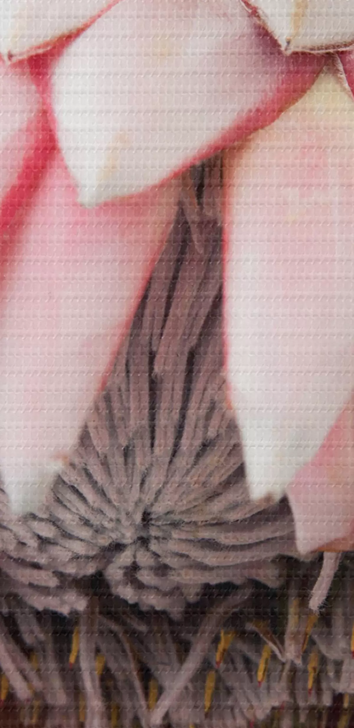 Drobny splot nici na tym płótnie przypomina powierzchnię profesjonalnych płócien artystycznych.