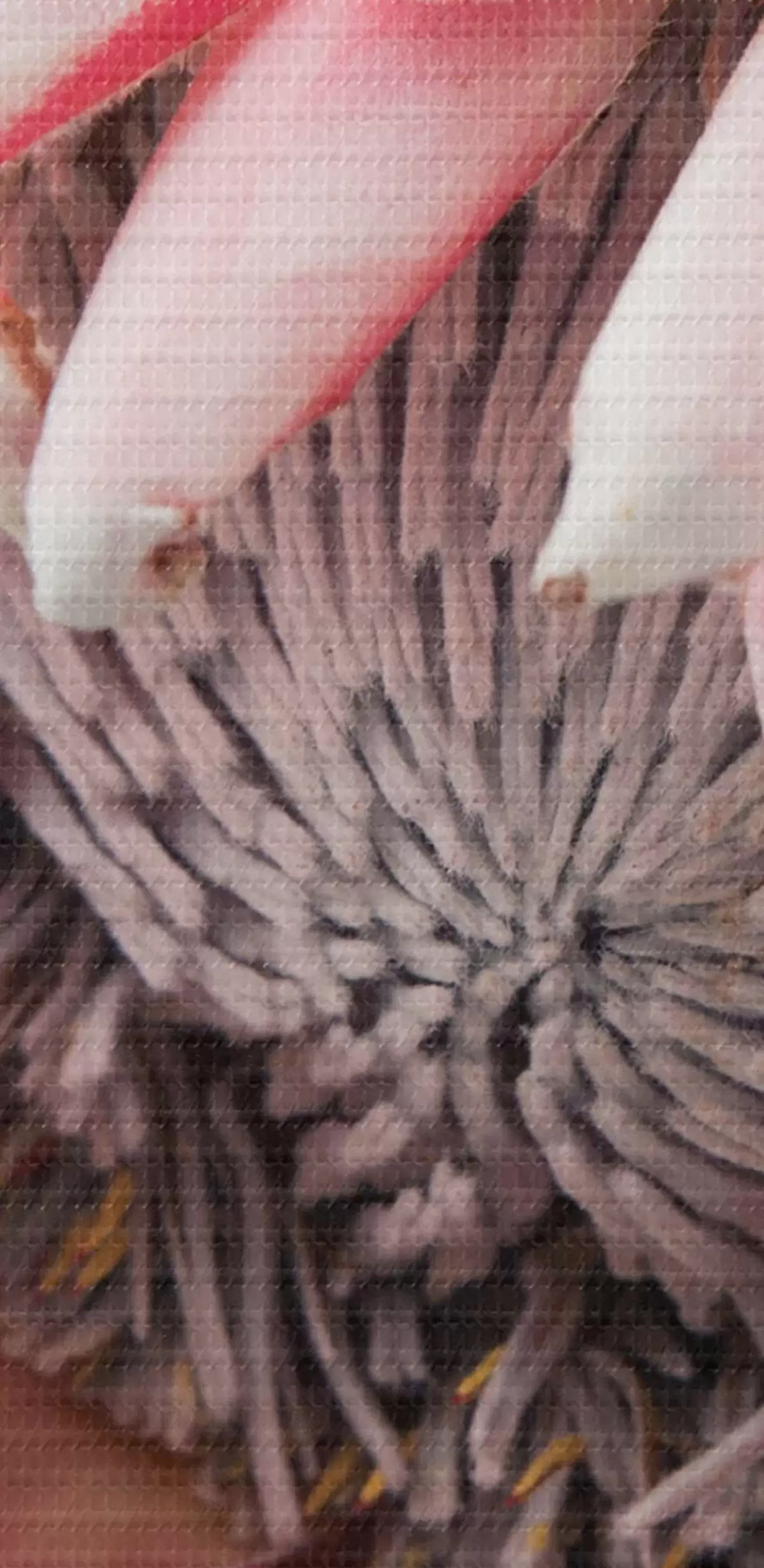Drobny splot nici na tym płótnie przypomina powierzchnię profesjonalnych płócien artystycznych.