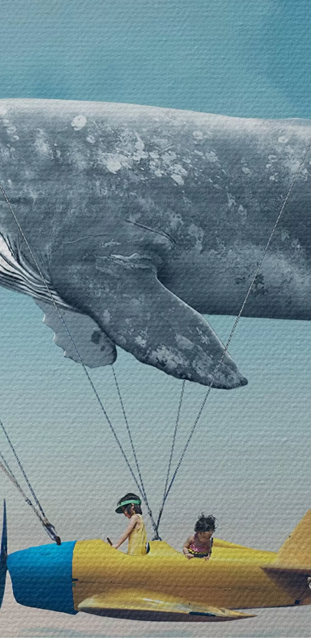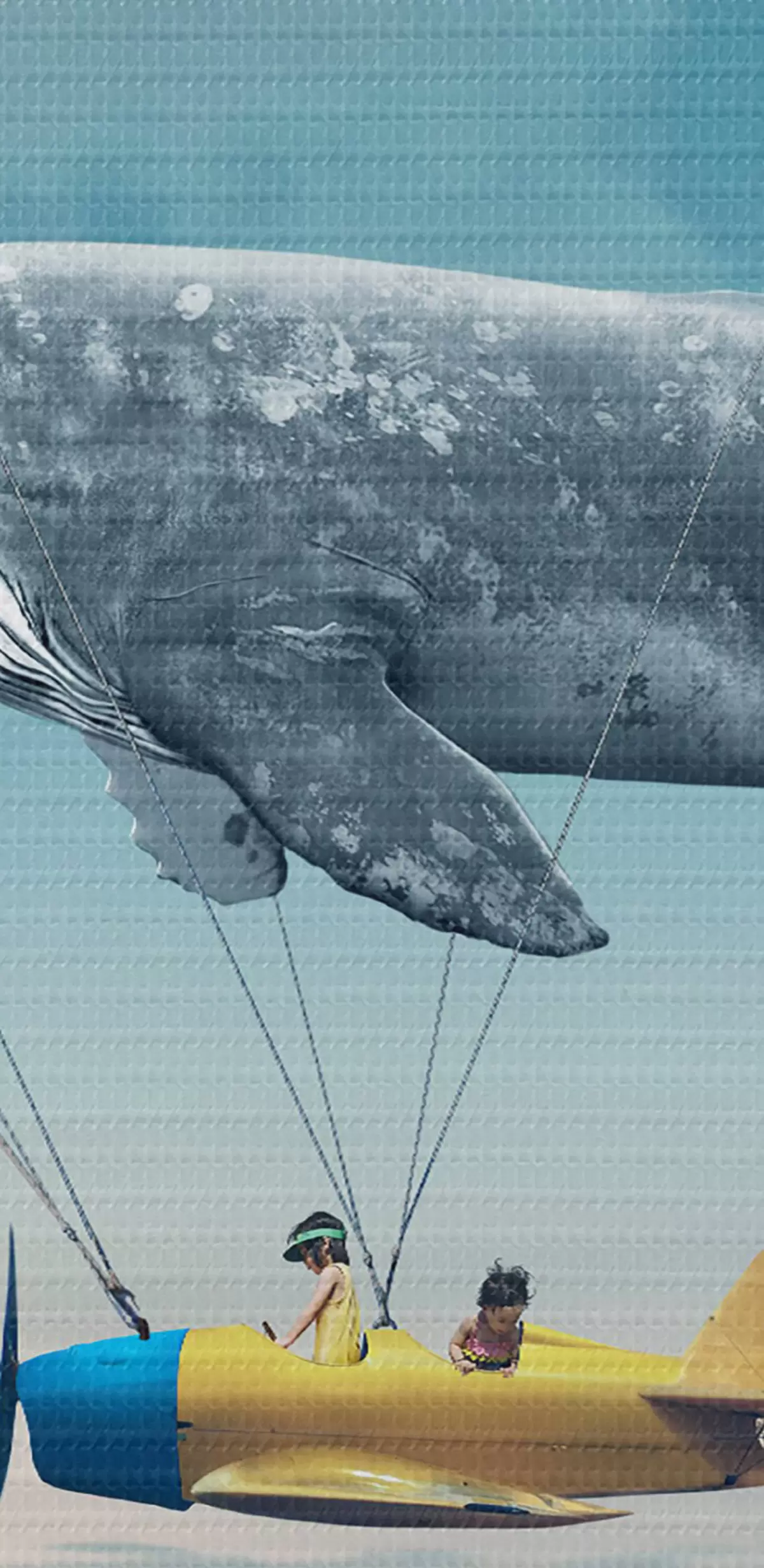 Okrągły obraz Wieloryb i wieloryb przyczepiony do małego samolotu Nr r36701