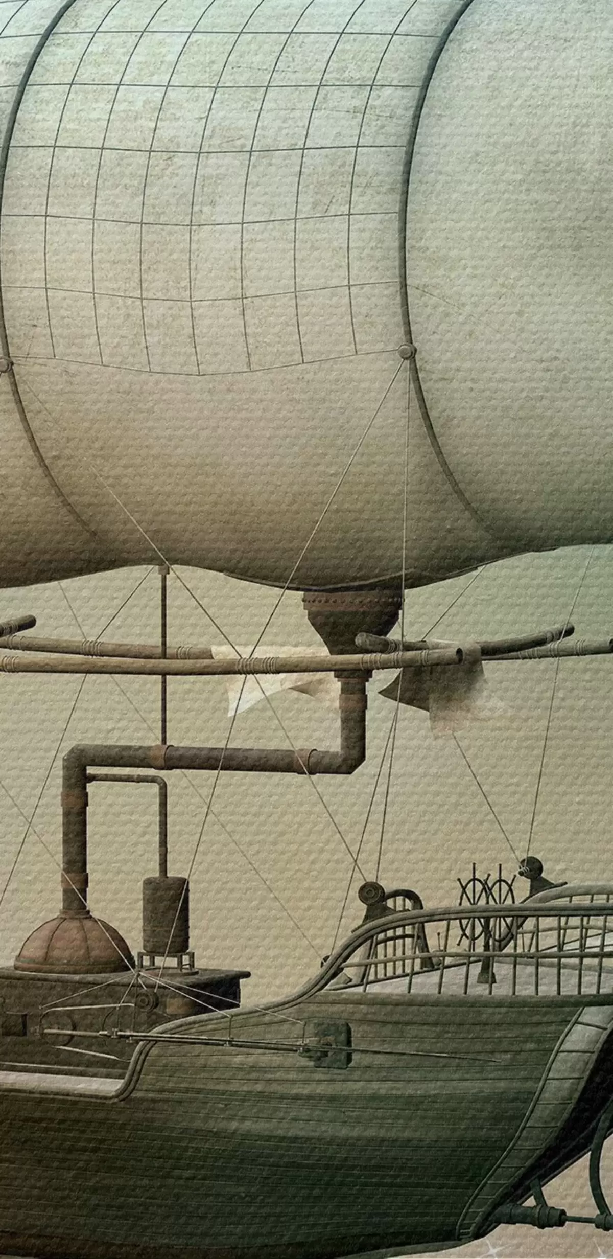 Okrągły obraz Steampunkowy sterowiec na niebie Nr r36706