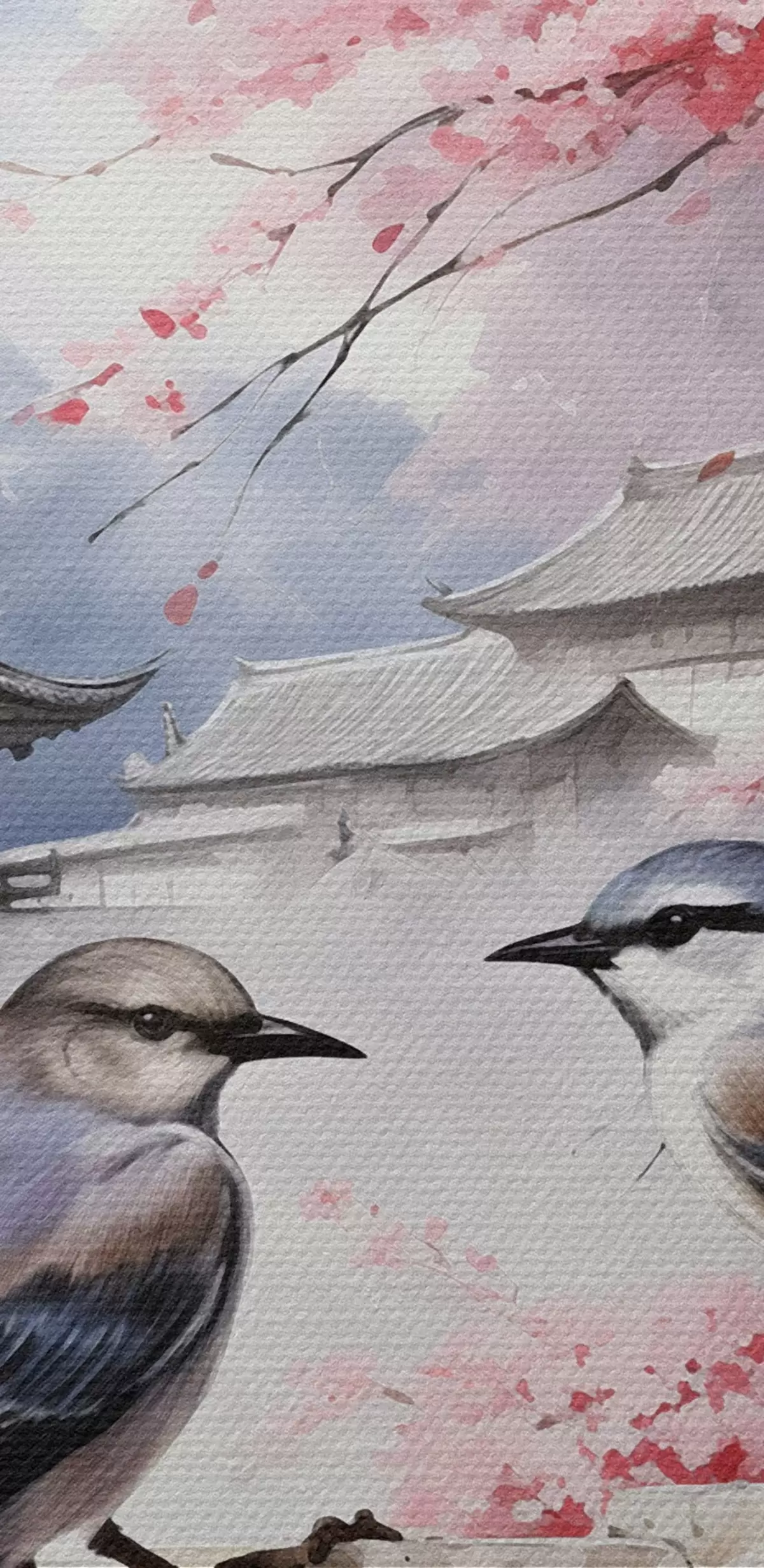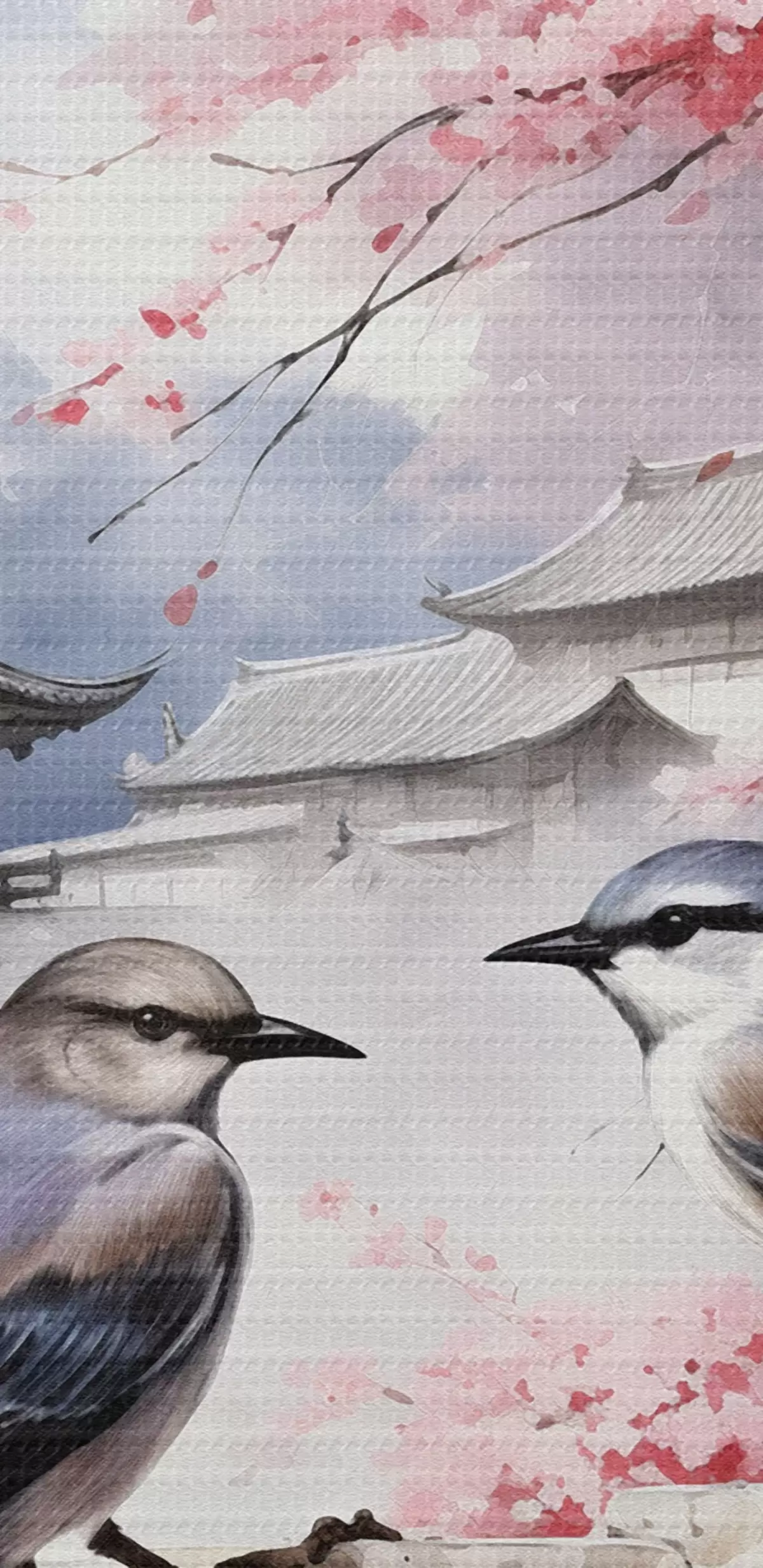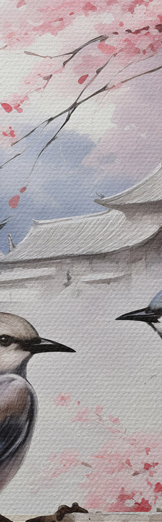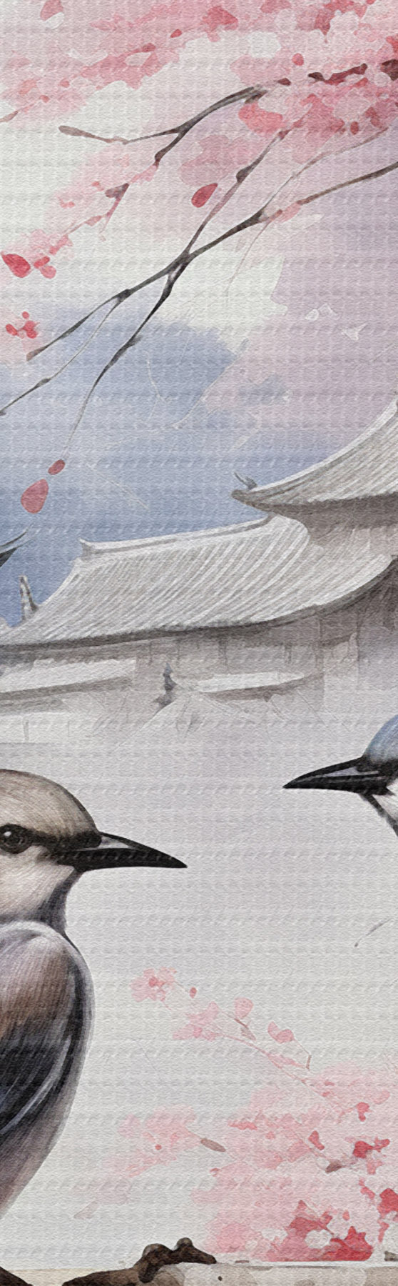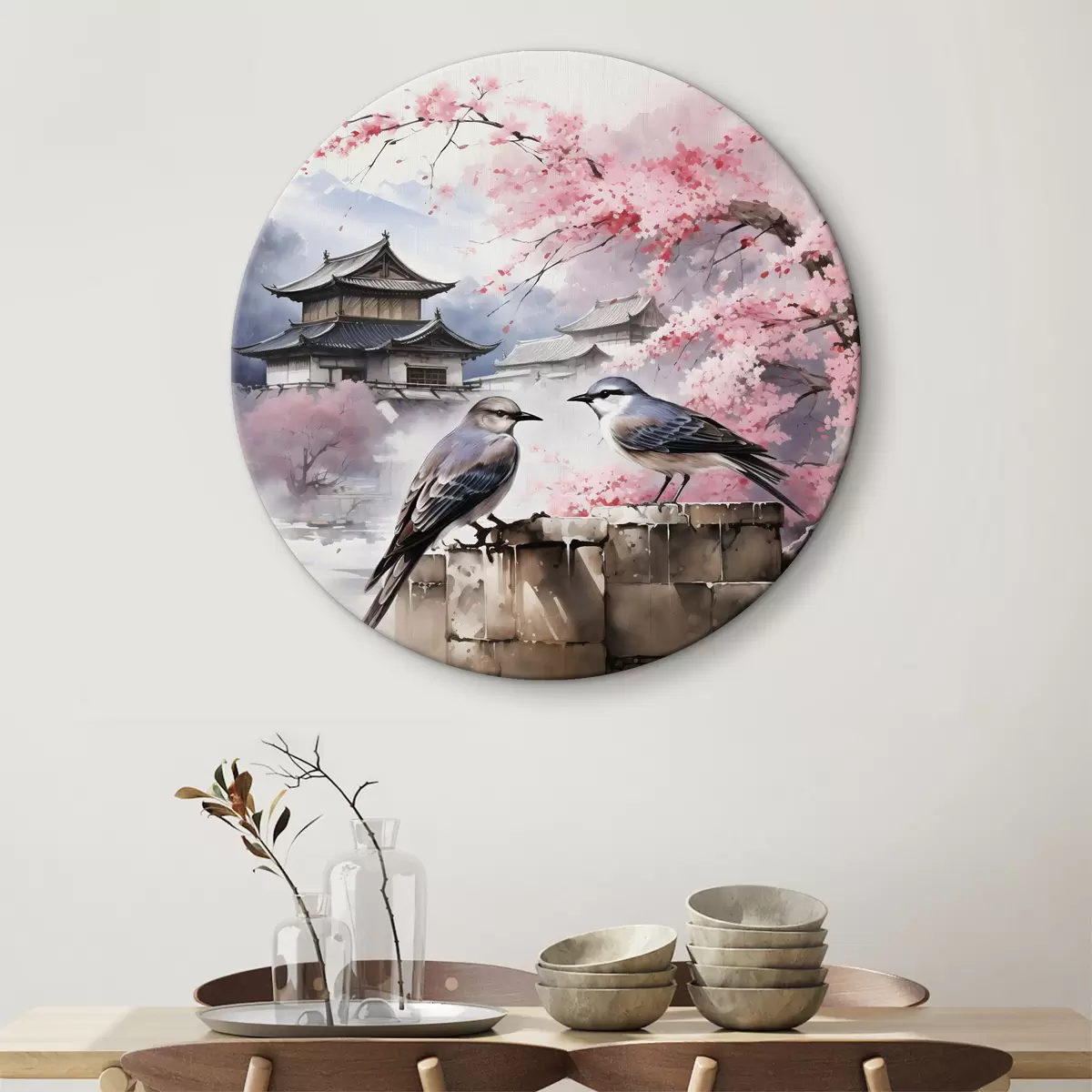 Okrągły obraz Dwa ptaki na tle kwitnącej sakury Nr r36815