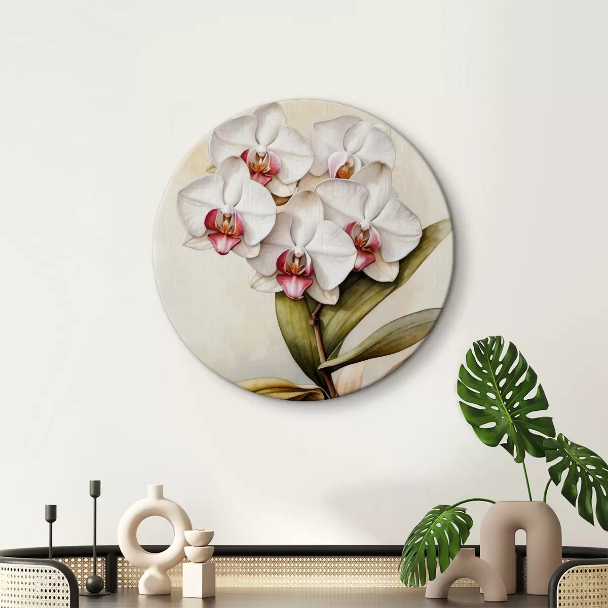 Okrągły obraz Orchidea na akwarelowym tle Nr r36829