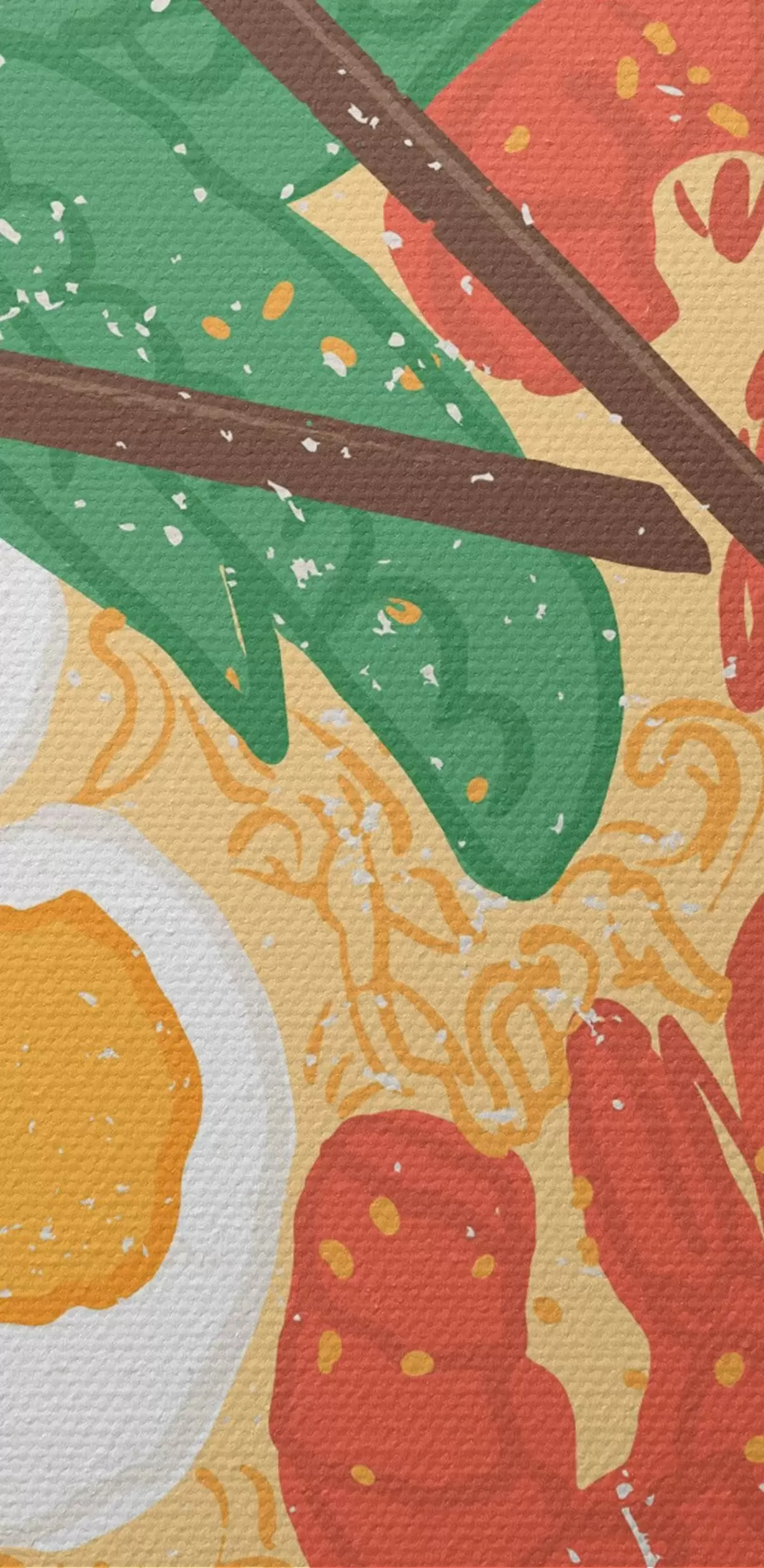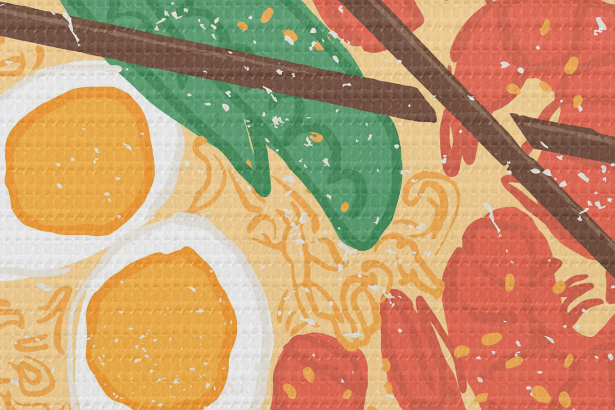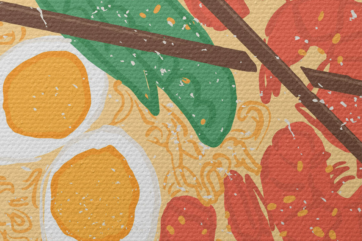 Okrągły obraz Stylowy plakat z jedzeniem ramen, styl retro, pop-art Nr r36863