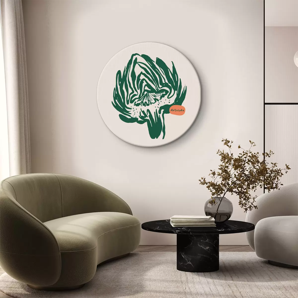 Okrągły obraz Rysunek rośliny w kolorze zielonym i białym Nr r36868