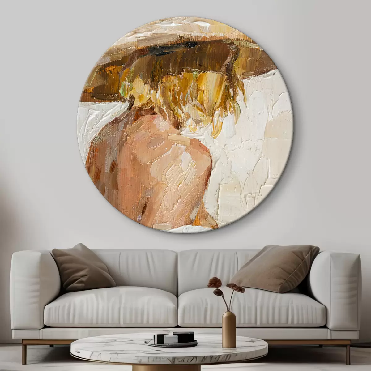 Okrągły obraz Portret kobiety od tyłu w oleju Nr r37061