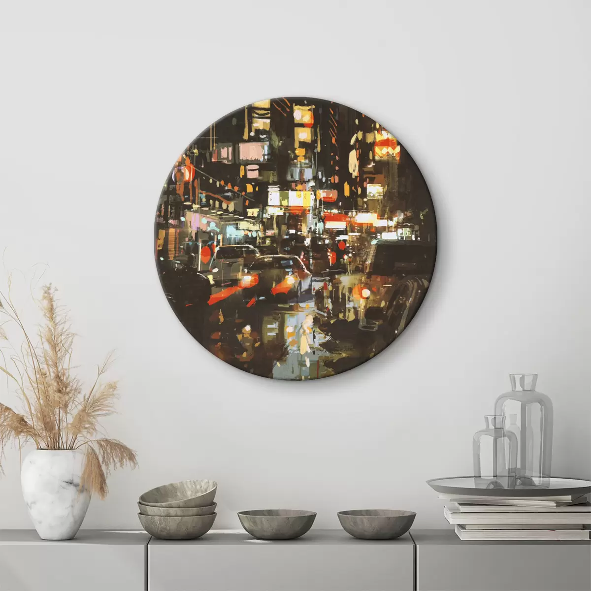 Okrągły obraz Miejska ulica z samochodami i światłami Nr r37097