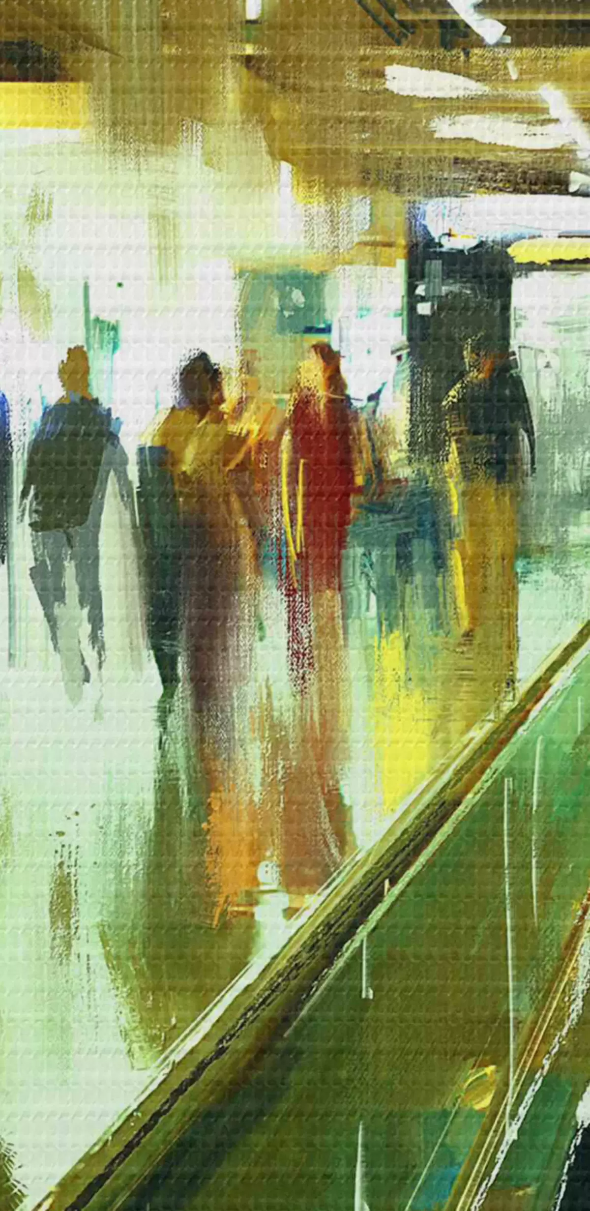 Okrągły obraz Grupa ludzi idących po ruchomych schodach Nr r37103