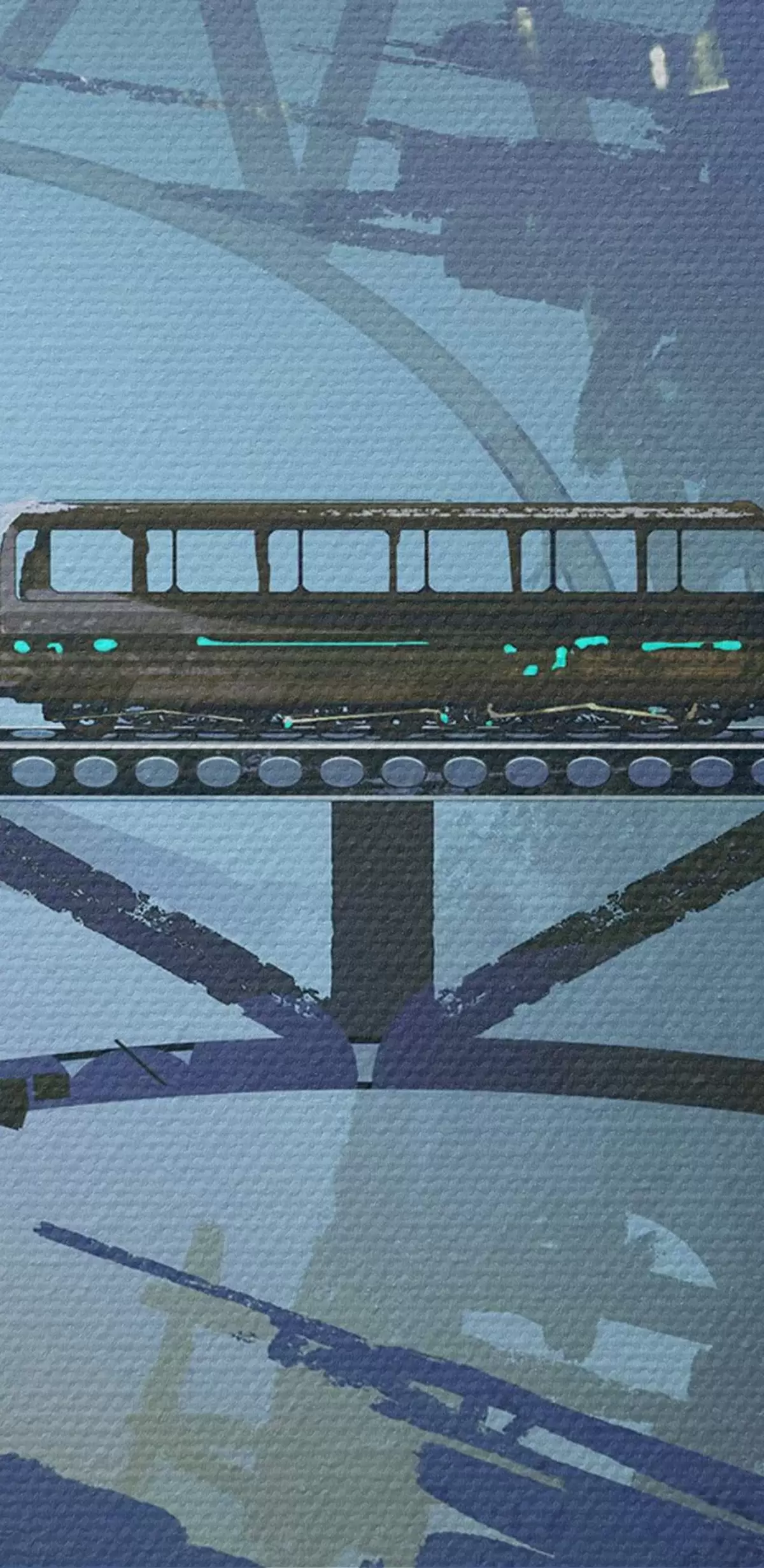 Okrągły obraz Pociąg na moście nad miastem Nr r37106