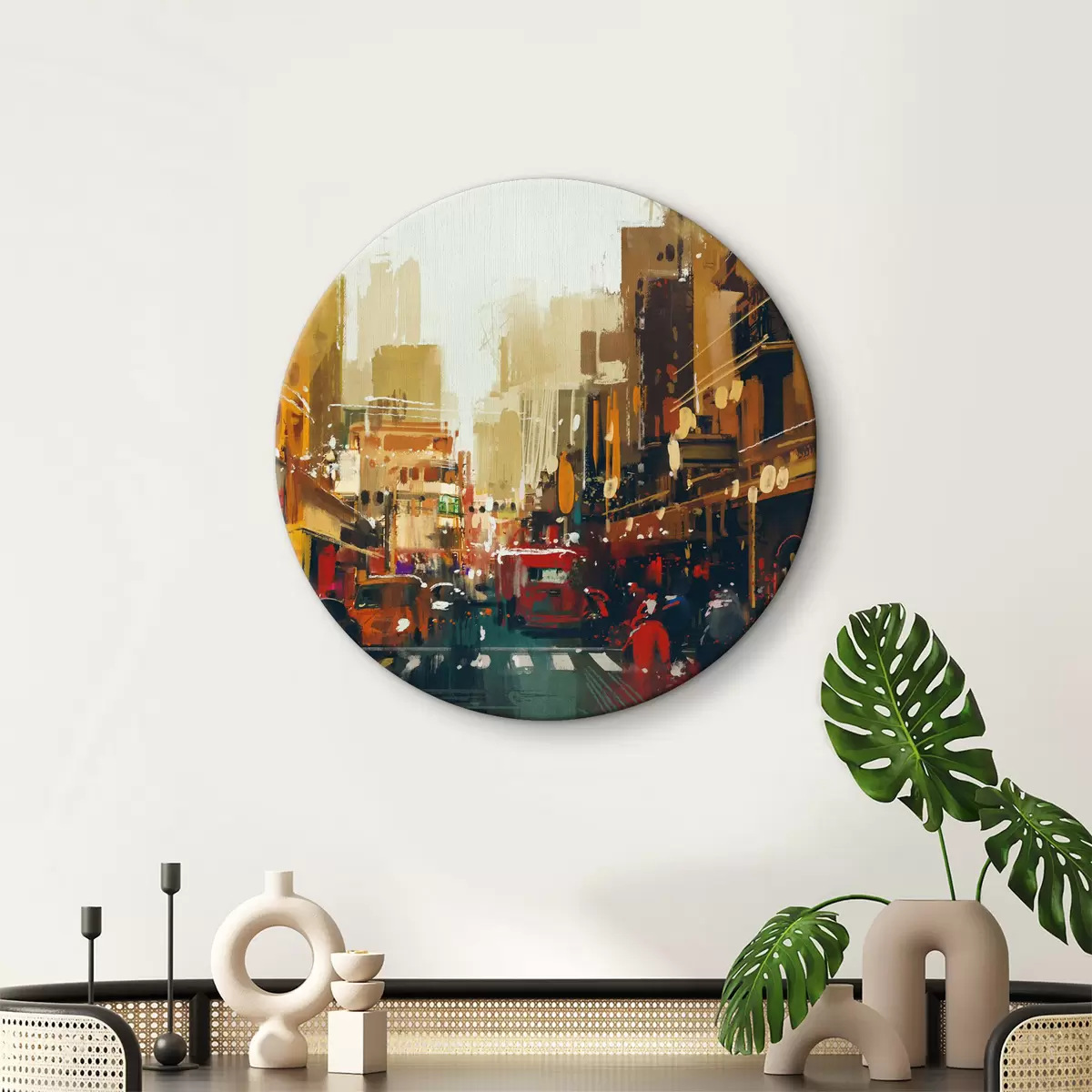 Okrągły obraz Miejska ulica z przechadzającymi się ludźmi Nr r37107