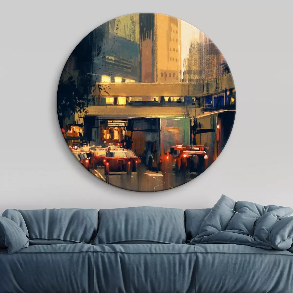 Okrągły obraz Ulica z samochodami i budynkami Nr r37110