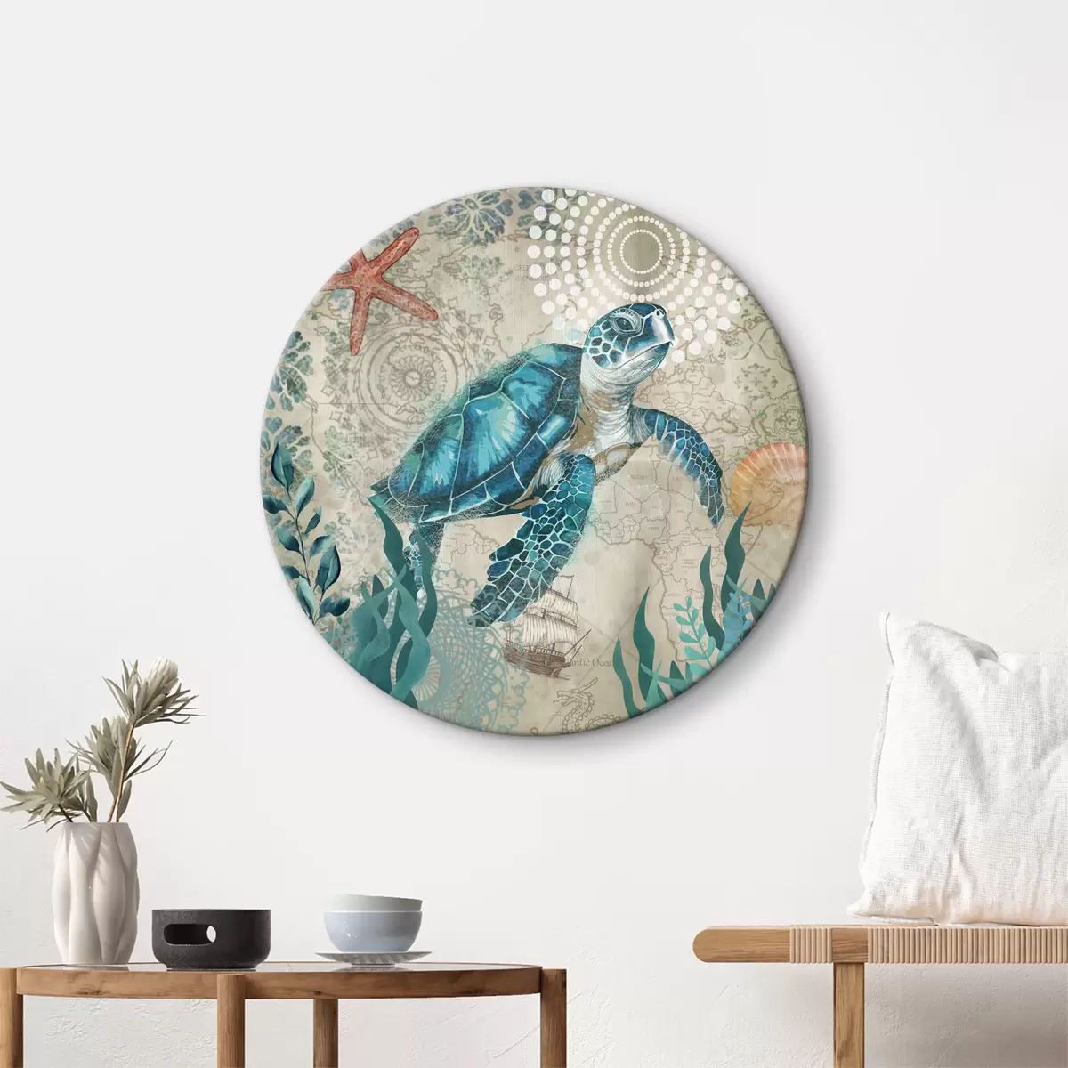 Okrągły obraz Niebieski żółw morski pływający w oceanie Nr r37151