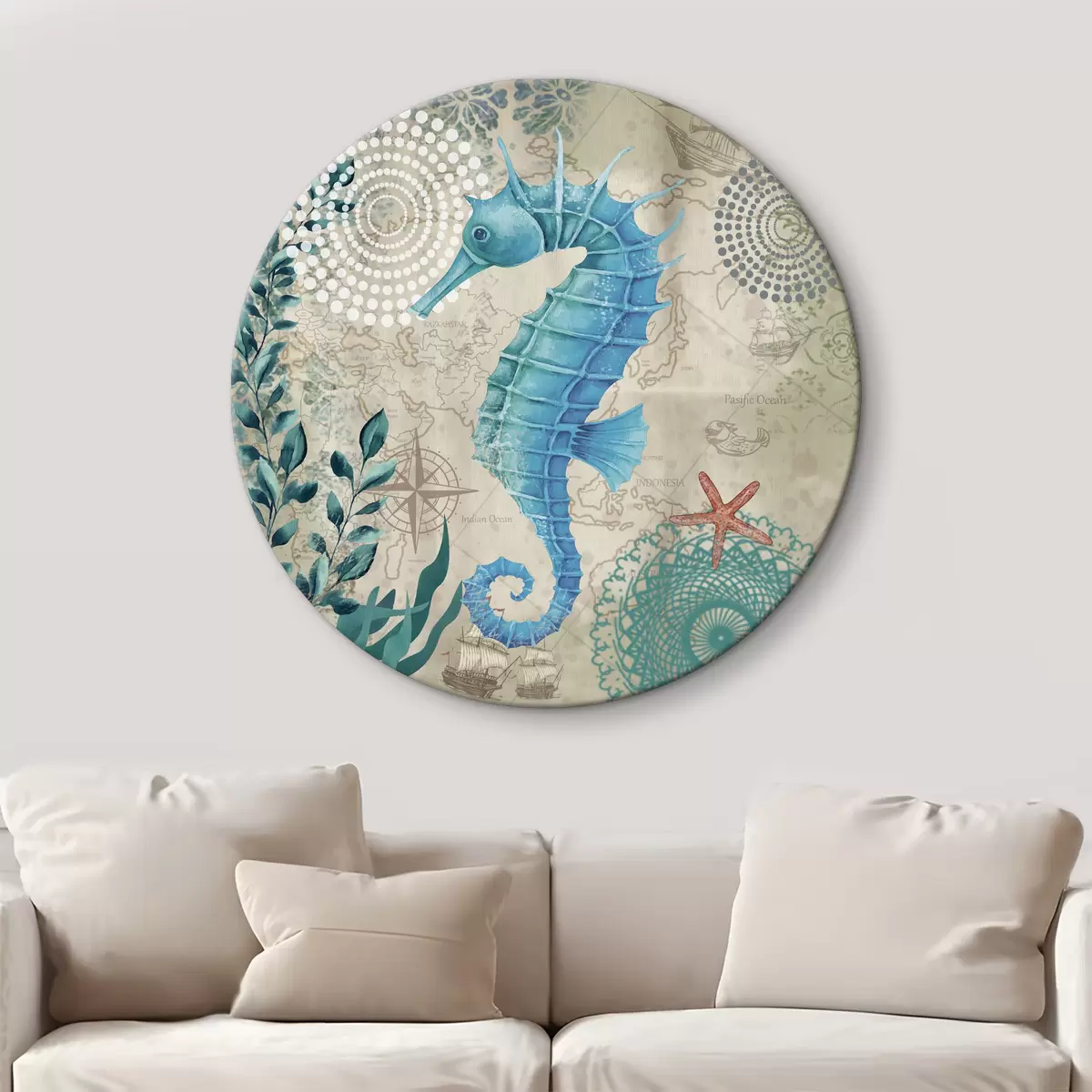 Okrągłe obrazy Konik morski i wodorosty na mapie r37152
