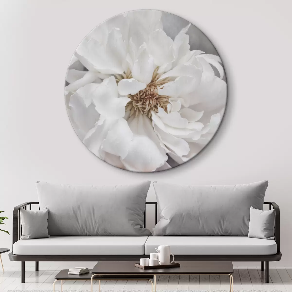 Okrągłe obrazy Duża biała piwonia r37161