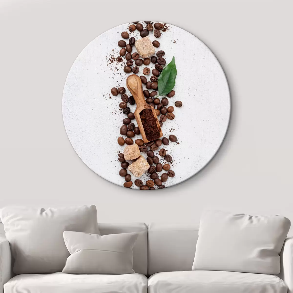 Okrągły obraz Łyżeczka z ziarnami kawy i cukrem na wierzchu Nr r37178