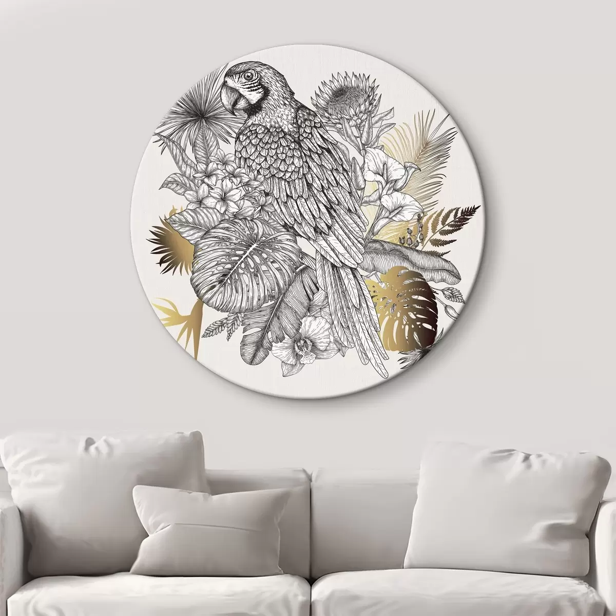 Okrągłe obrazy Ptak siedzący na gałęzi z liśćmi r37182