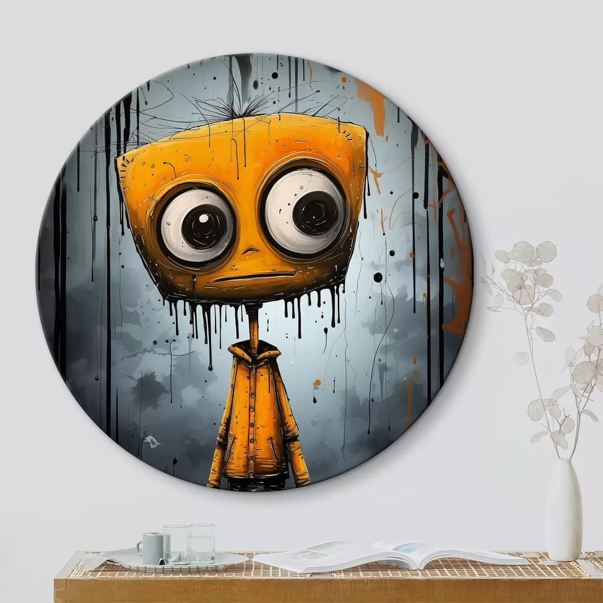 Okrągły obraz Postać z kreskówki z kwadratową głową i dużymi oczami Nr r37254