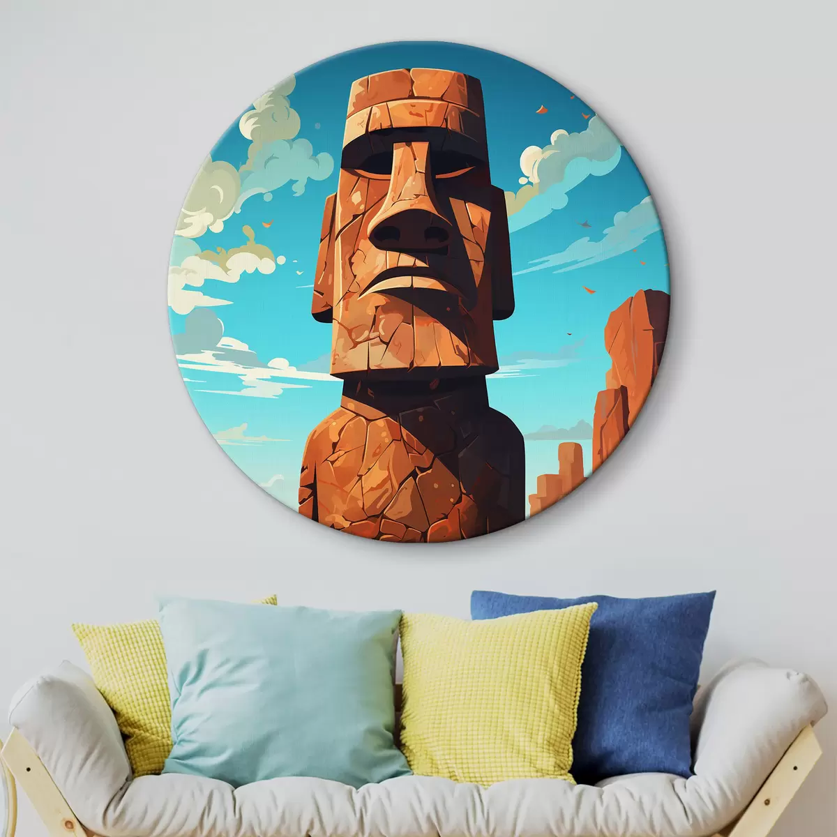 Okrągły obraz Starożytna kamienna twarz pod błękitnym niebem Nr r37255
