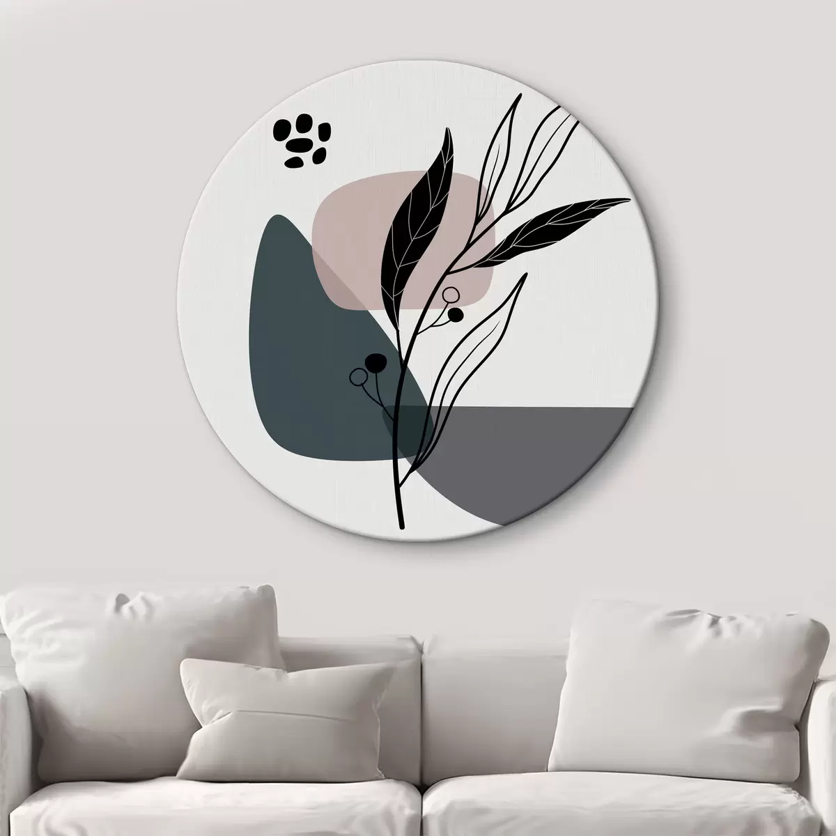 Okrągły obraz Róż i roślina z czarnymi i przezroczystymi liśćmi Nr r37273