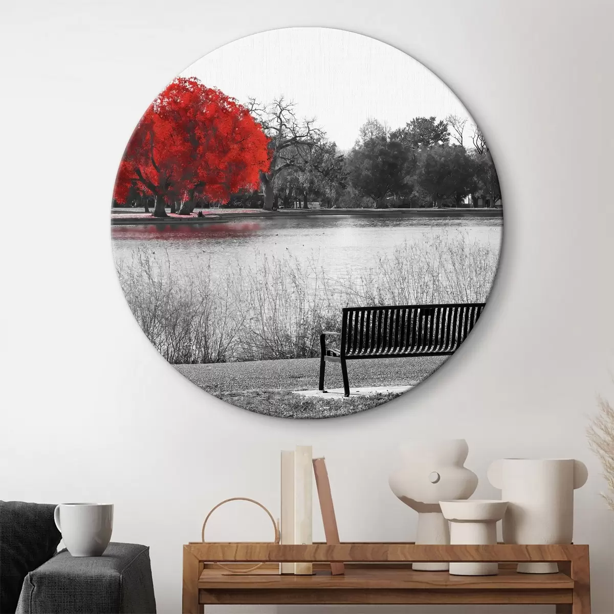 Okrągły obraz Czerwone drzewo na szarym tle Nr r37300