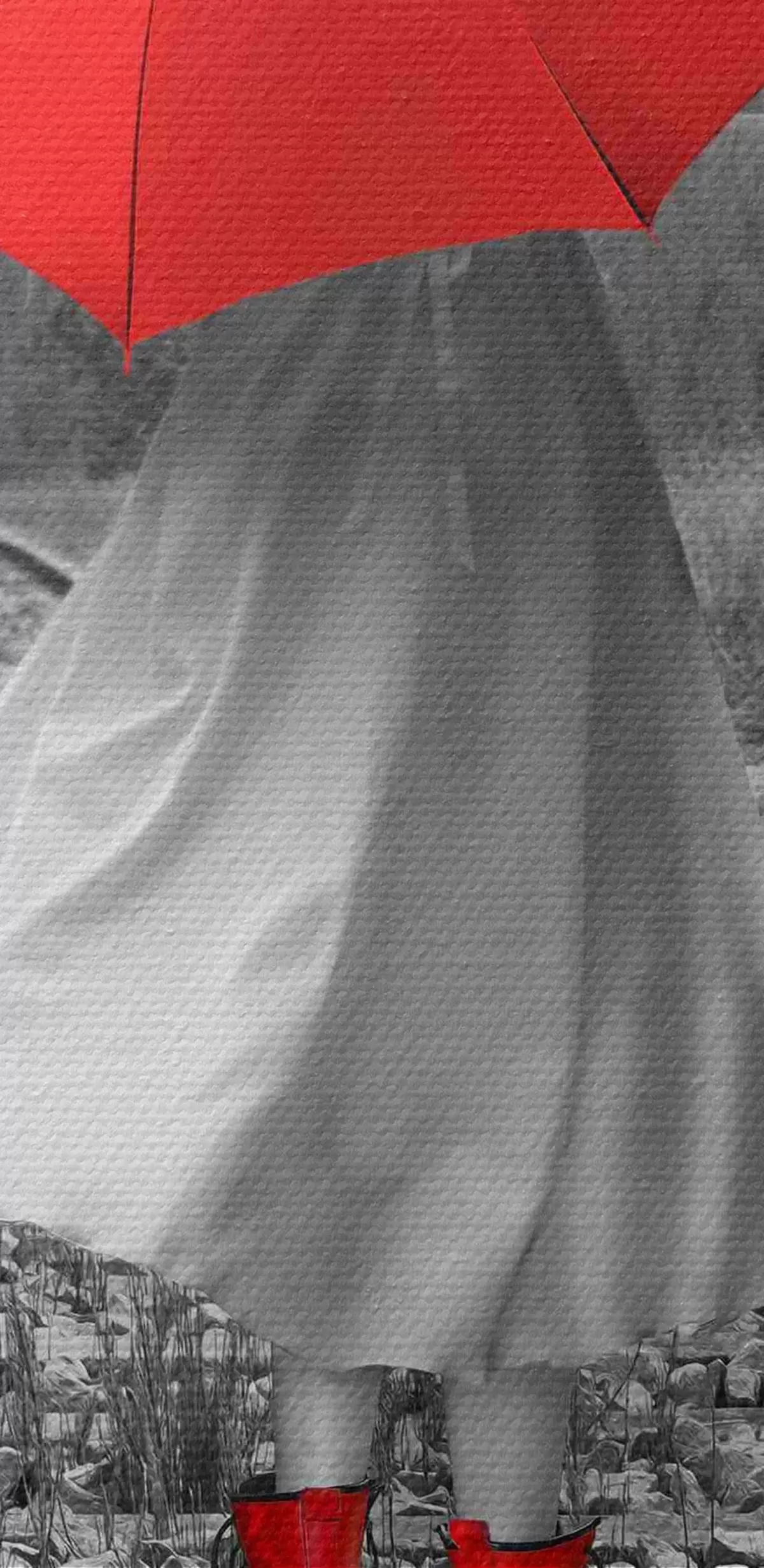 Okrągły obraz Osoba z czerwonym parasolem na torach kolejowych Nr r37301