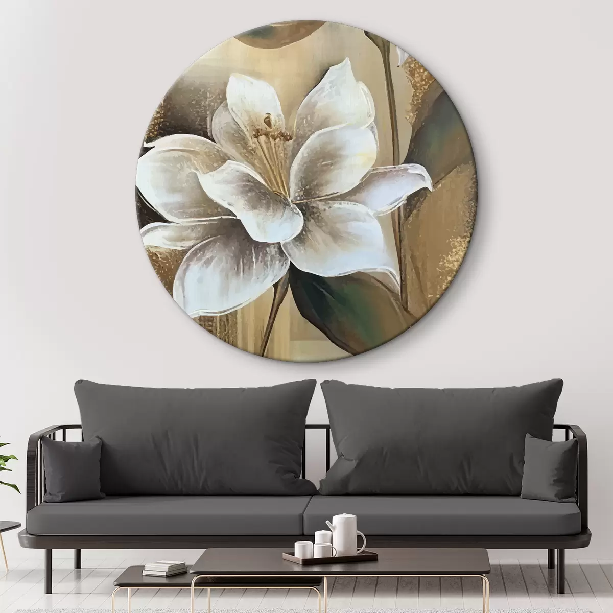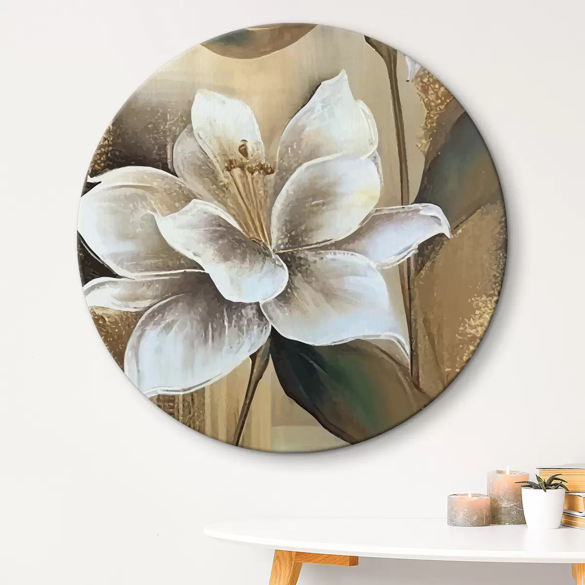 Okrągły obraz Białe kwiaty na złotym tle Nr r37308