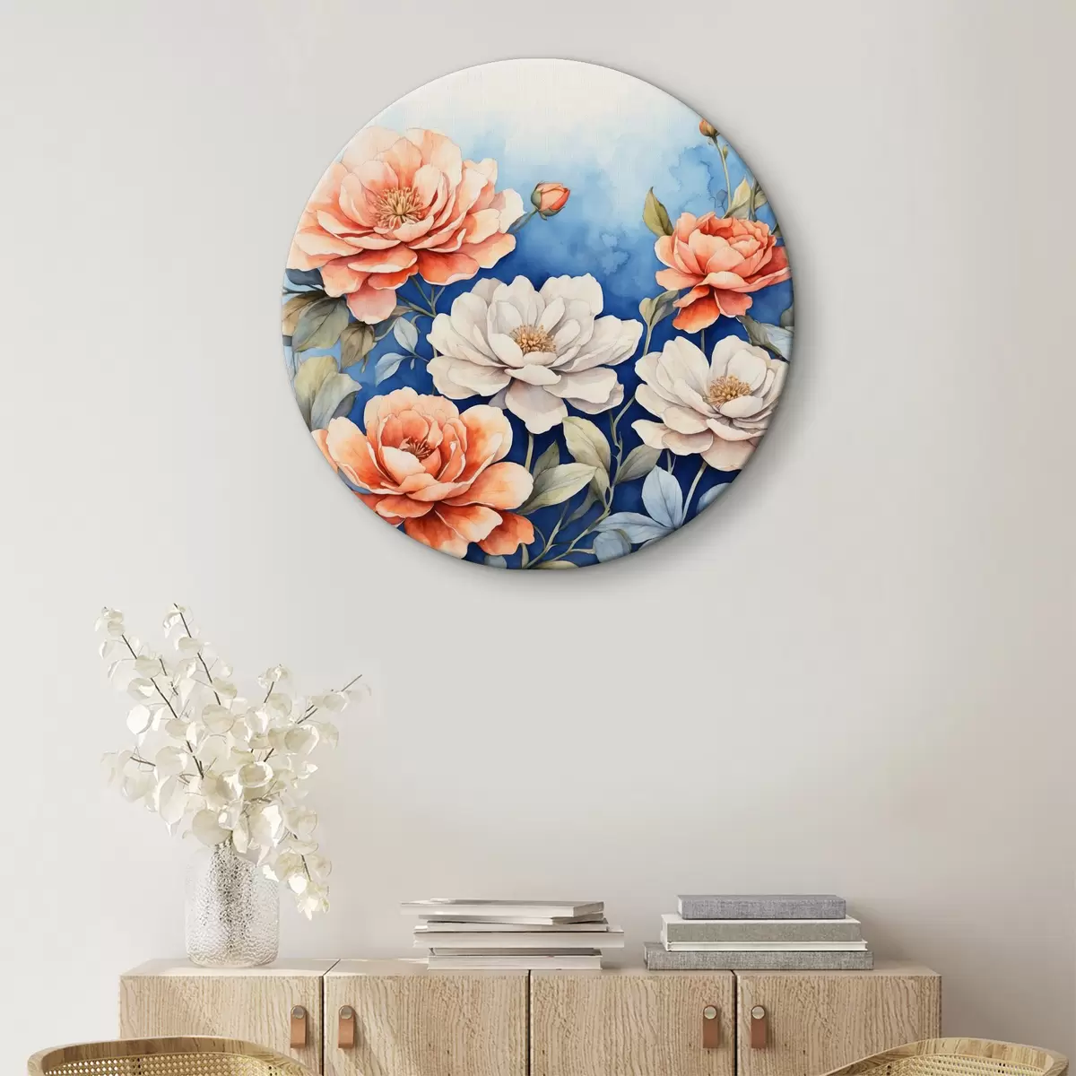 Okrągły obraz Obraz kwiatów na niebieskim tle Nr r37332