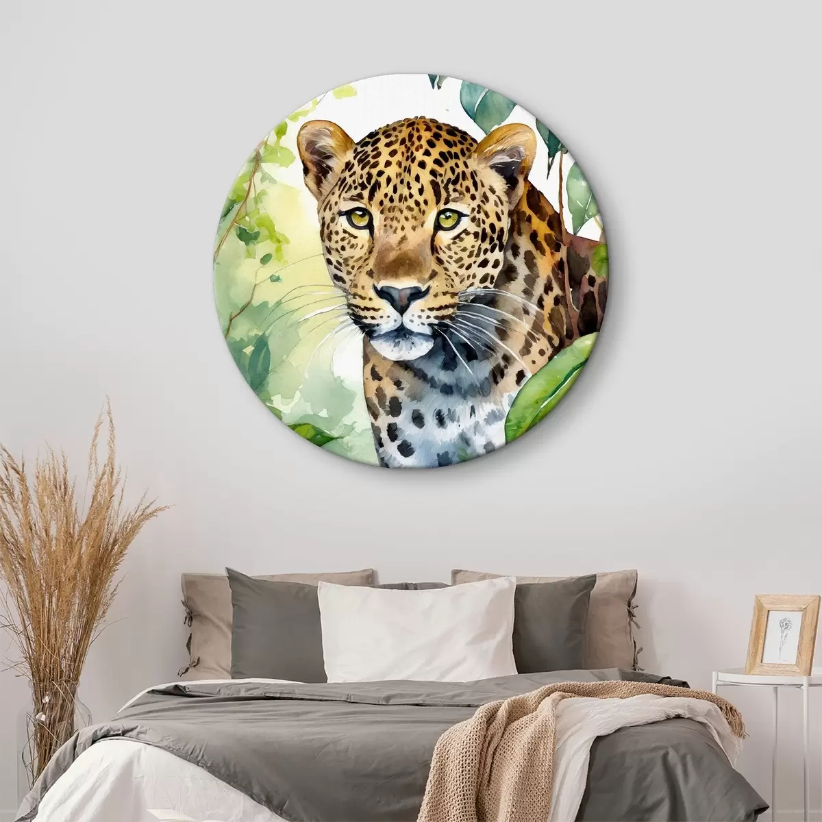 Okrągły obraz Akwarela przedstawiająca lamparta Nr r37340