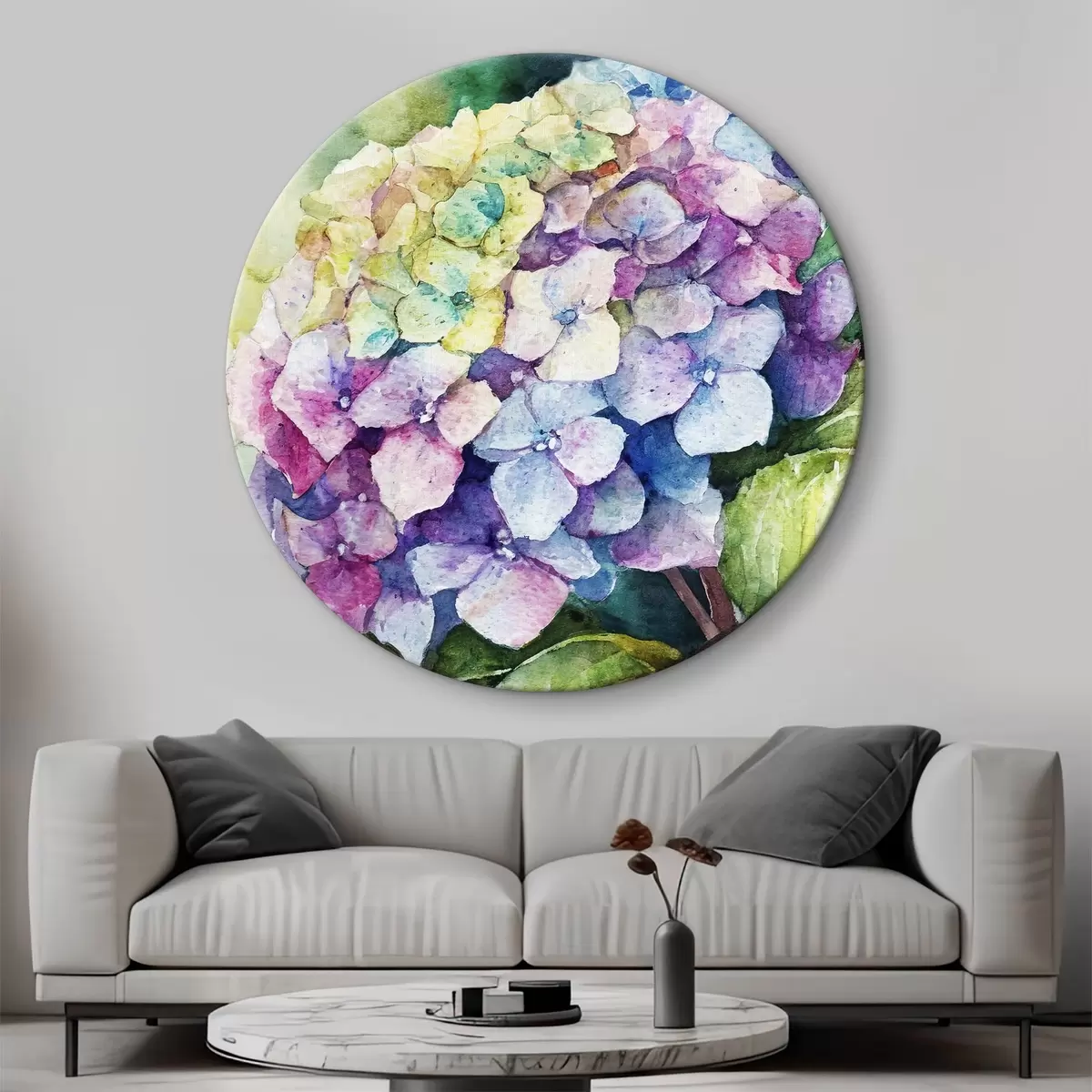 Okrągłe obrazy Hortensja akwarelowa, ilustracja kwiatowa, naturalne kolory r37343