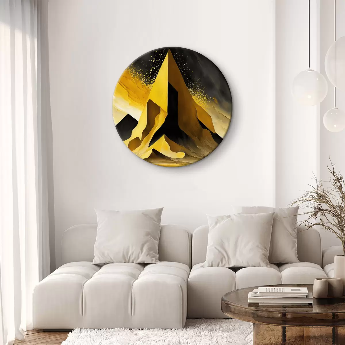Okrągły obraz Sztuka geometryczna, abstrakcja kosmiczna, futurystyczna, pustynia ze skałami Nr r37365