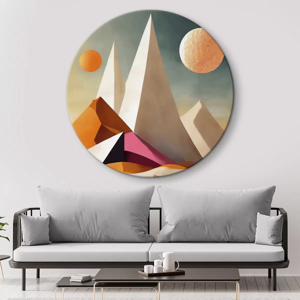 Okrągły obraz Sztuka geometryczna, abstrakcja, różowy i pomarańczowy, kosmiczny, pustynia ze skałami Nr r37370