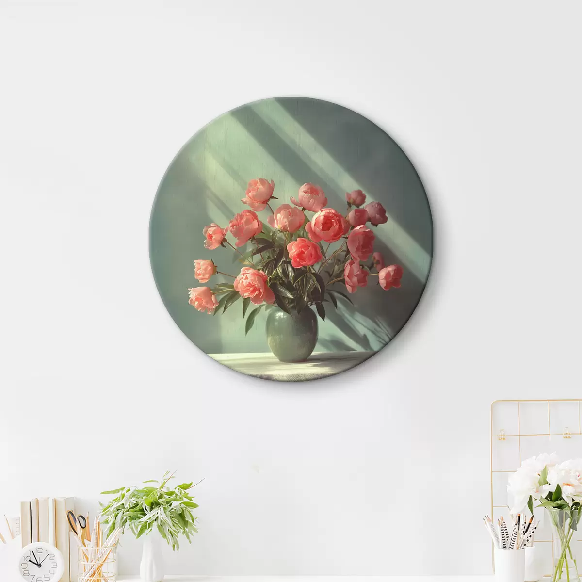 Okrągły obraz Piwonie w wazonie Nr r37375