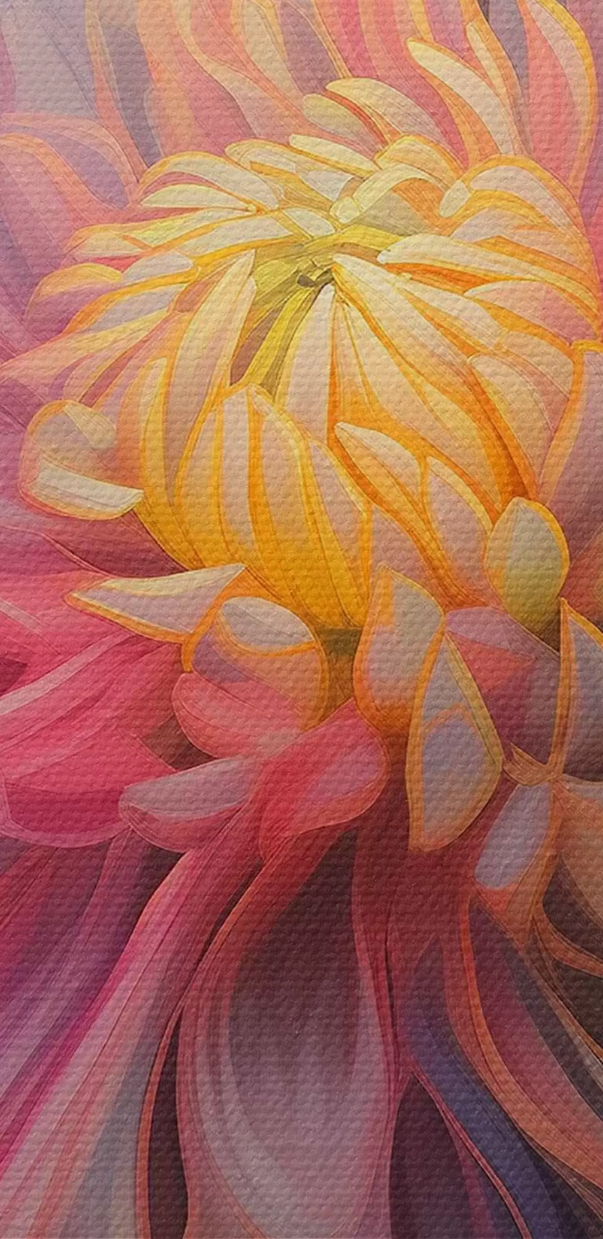 Drobny splot nici na tym płótnie przypomina powierzchnię profesjonalnych płócien artystycznych.