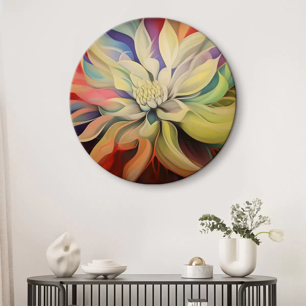 Okrągłe obrazy Kolorowy kwiat z białymi płatkami r37386