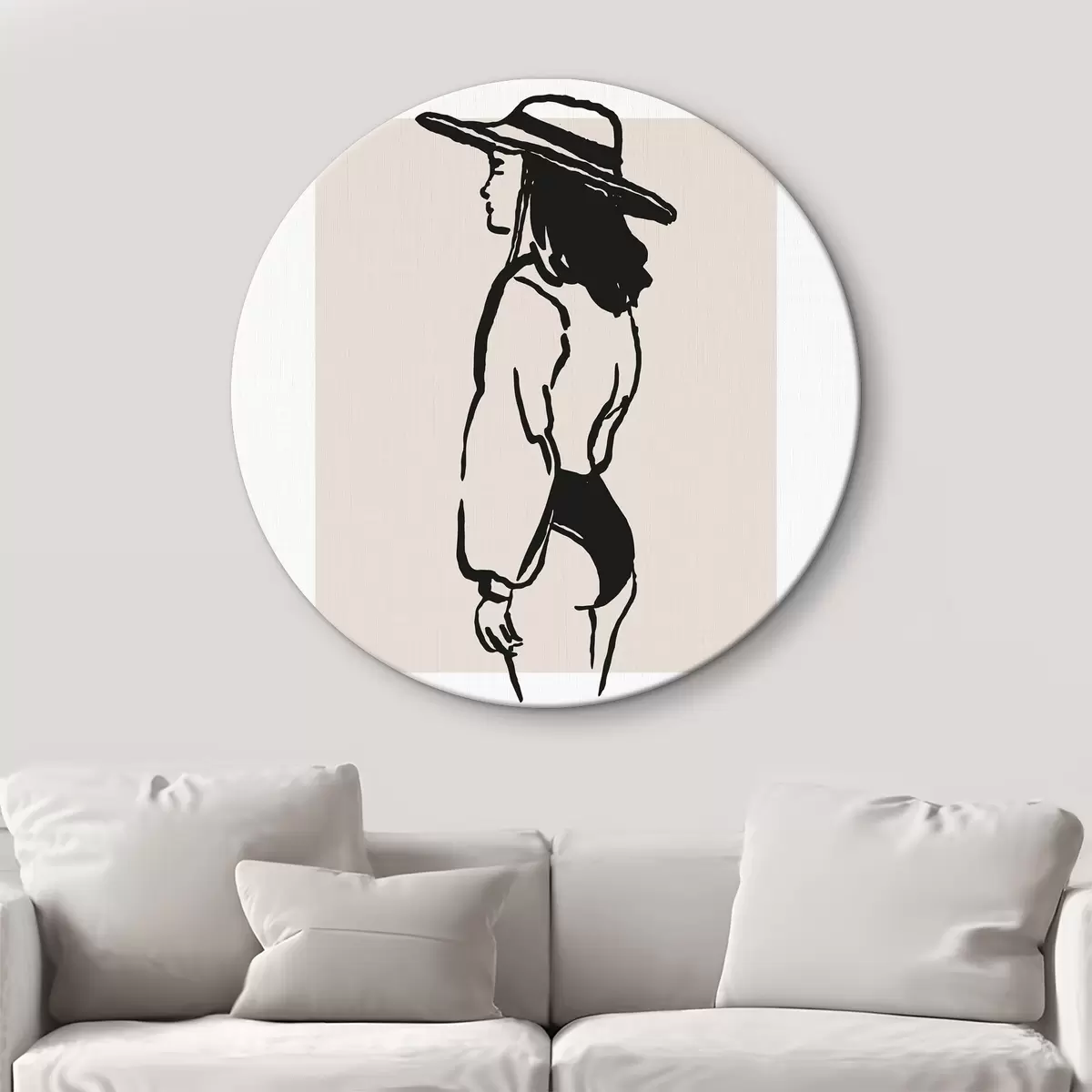 Okrągłe obrazy Dziewczyna z dużym kapeluszem styl przygodowy boho sztuka nowoczesna r37412
