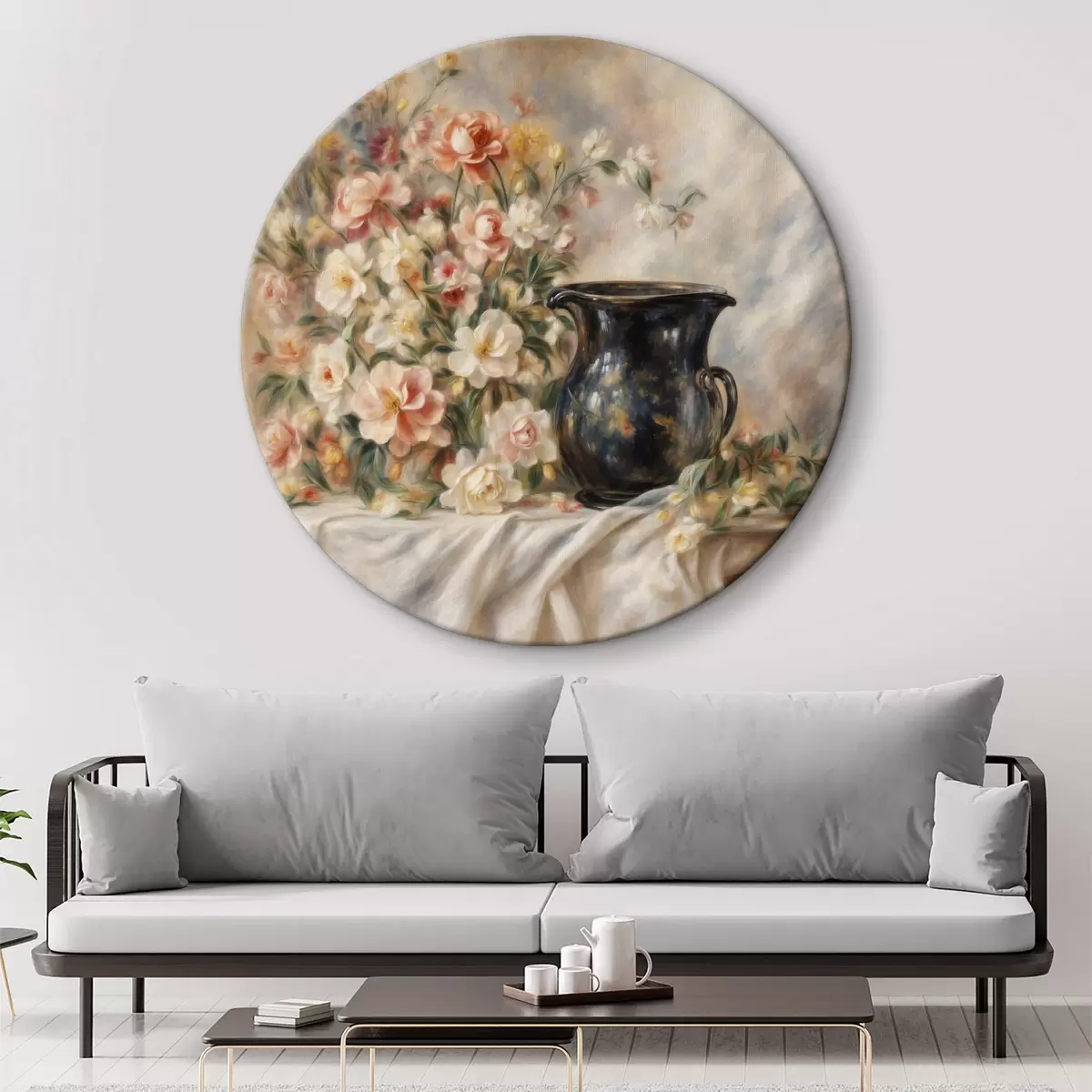 Okrągły obraz Letni bukiet i dzbanek w stylu Auguste'a Renoira Nr r37437