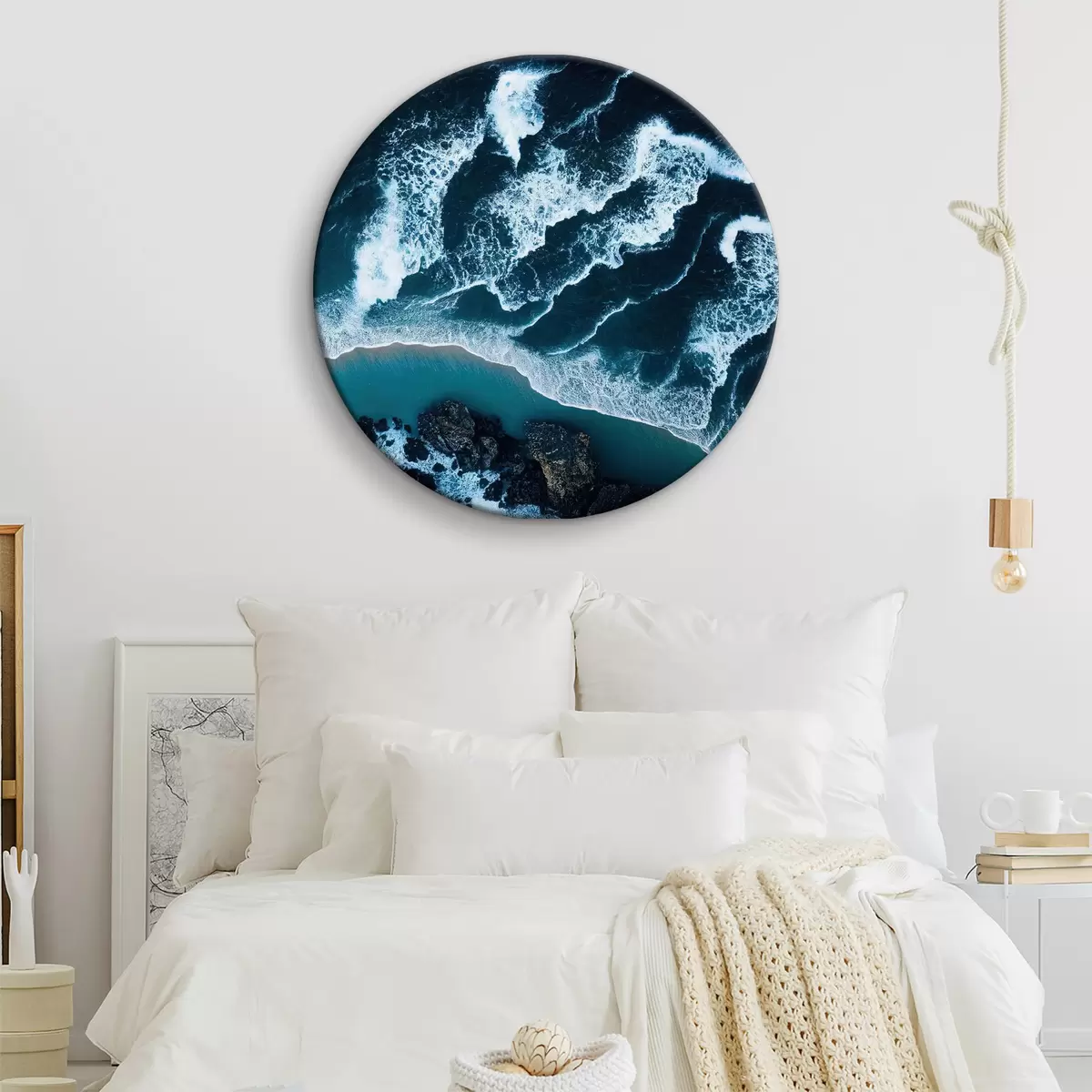 Okrągłe obrazy Fale rozbijające się o plażę r37468