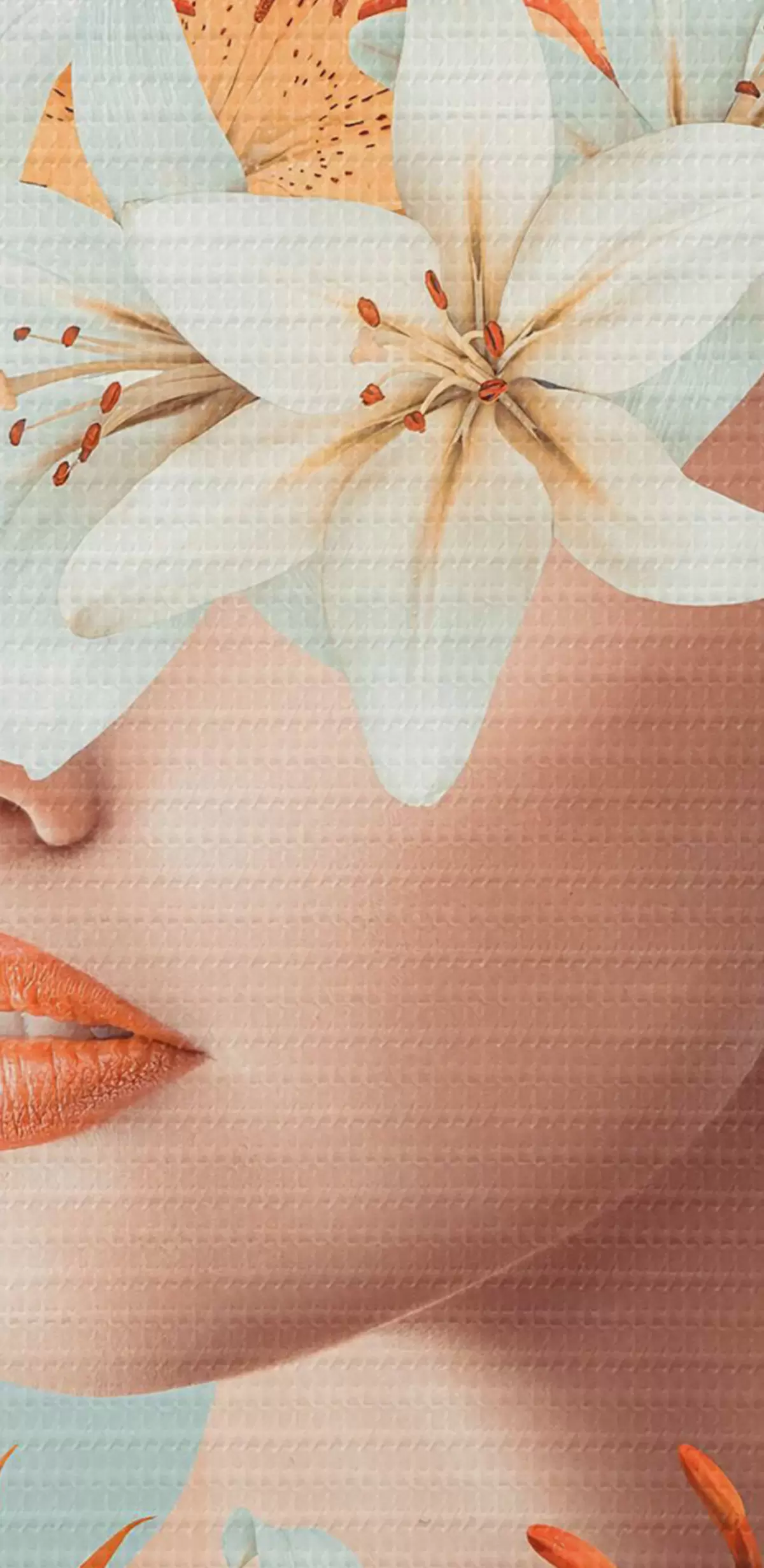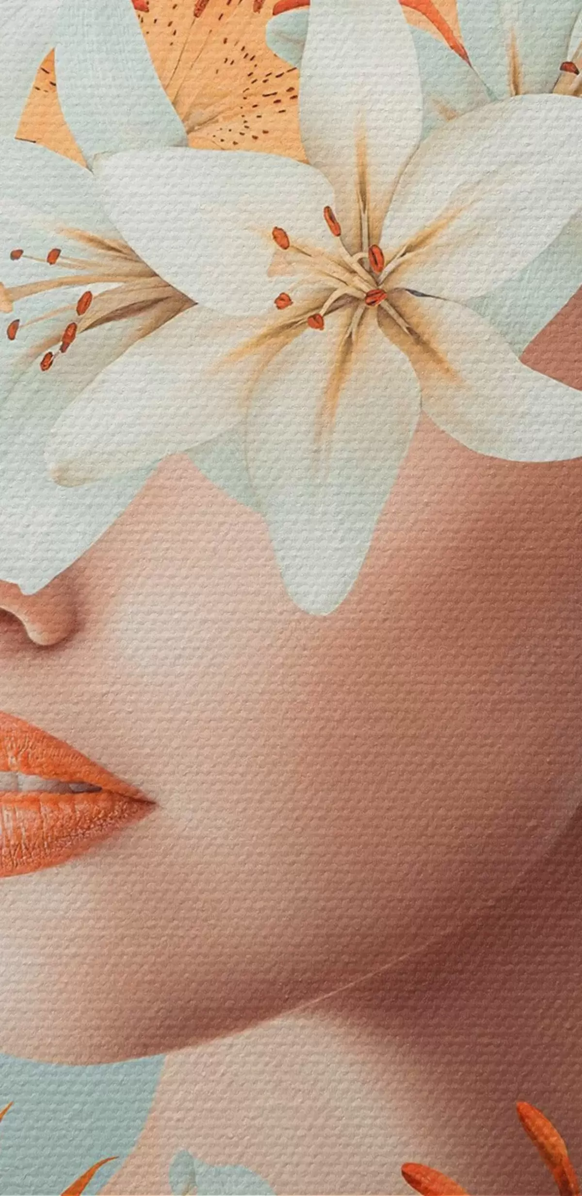 Okrągły obraz Kobieta z kwiatami wokół oczu Nr r37480