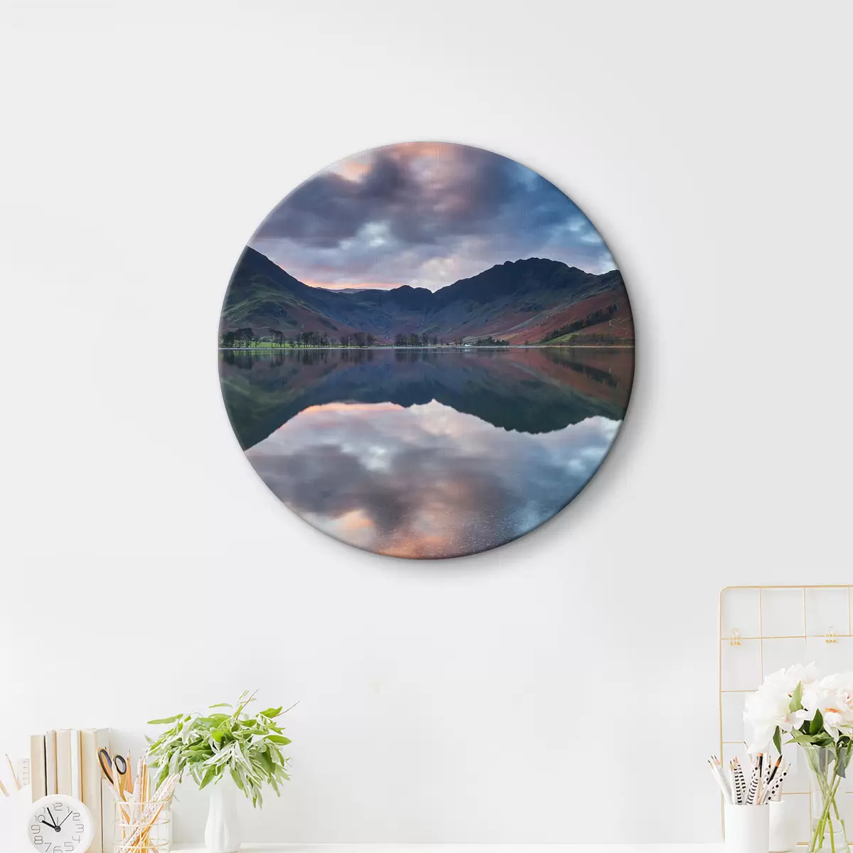 Okrągły obraz Jezioro z górami w tle Nr r37533