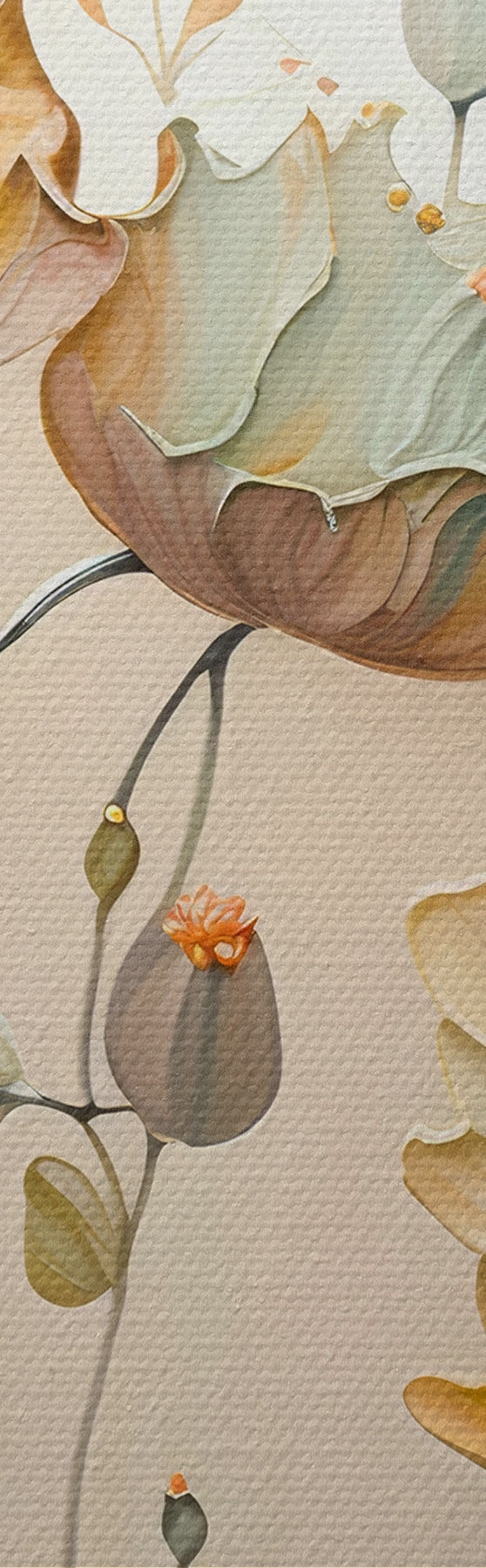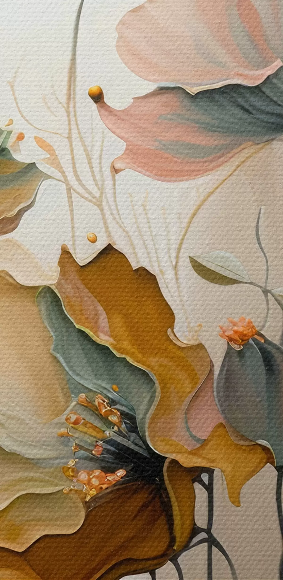 Do zamówienia dostępne są trzy rodzaje materiału: Economic Canvas - gęsty i trwały materiał do druku cyfrowego, identyczny z płótnem malarskim, wodoodporna powierzchnia, realistyczne odwzorowanie szczegółów, materiał średnioziarnisty. Premium Canvas - tekstura przypominająca płótno malarskie (przeplatane drobne nitki). Miękka, szczegółowa reprodukcja obrazu na matowej powierzchni. Eco-Premium - wysokiej jakości tkanina w 100% bawełniana. Dzięki naturalnym włóknom bawełnianym materiał jest trwały i odporny na zużycie. Doskonałe odwzorowanie kolorów i szczegółów.