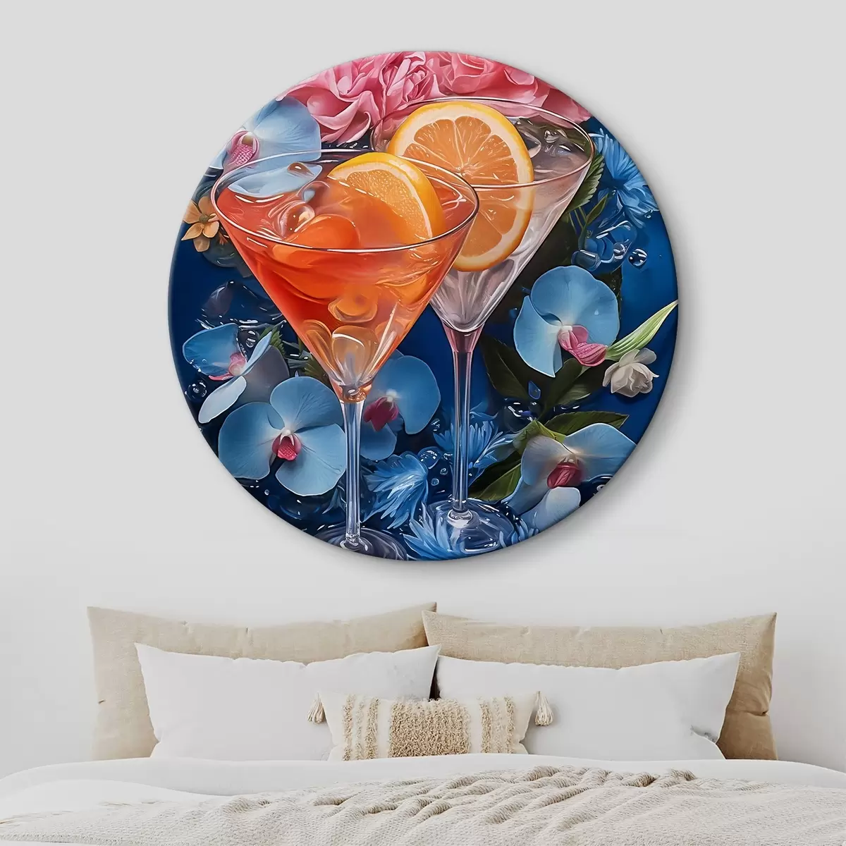 Okrągły obraz Para okularów z pomarańczami i kwiatami Nr r37564